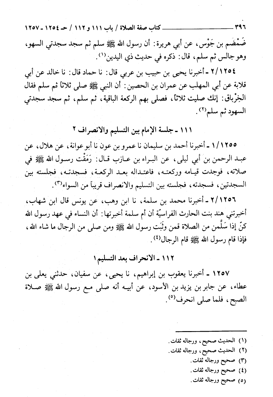 1254 - أخبرنا يحيى بن حبيب بن عربي قال نا حماد قال نا خالد عن أبي قلابة عن أبي المهلب عن عمران بن الحصين : أن النبي صلى الله عليه و سلم صلى ثلاثا ثم سلم فقال الخرباق إنك صليت ثلاثا فصلى بهم الركعة الباقية ثم سلم ثم سجد سجدتي السهو ثم سلم
