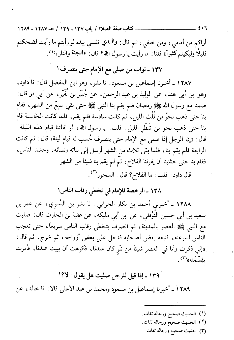 ( 137 ثواب من صلى مع الإمام حتى ينصرف )