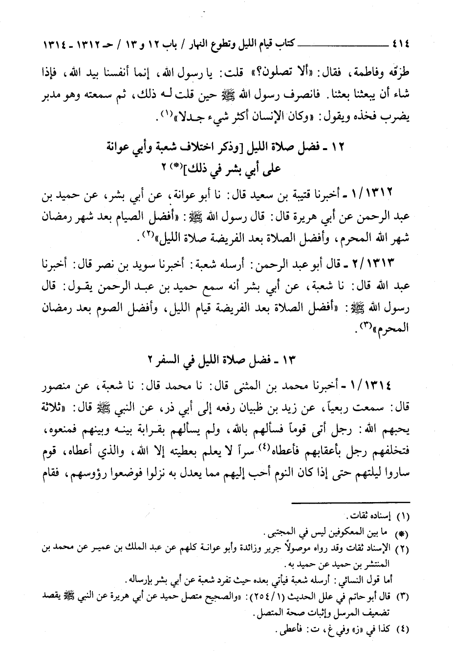 ( 12 فضل صلاة الليل وذكر اختلاف شعبة وأبي عوانة على أبي بشر في ذلك )