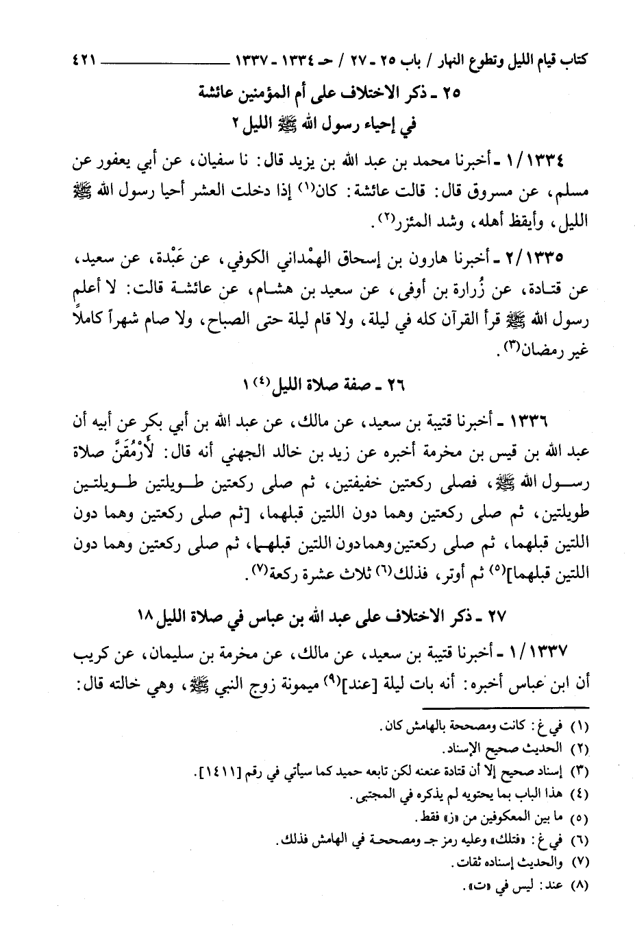 ( 25 ذكر الاختلاف على أم المؤمنين عائشة في إحياء رسول الله صلى الله عليه و سلم الليل )