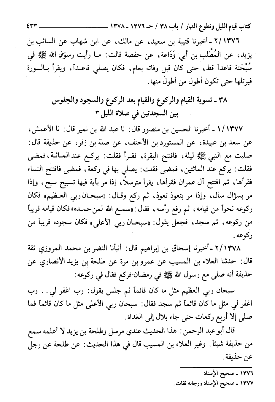 ( 38 تسوية القيام والركوع والقيام بعد الركوع والسجود والجلوس بين السجدتين في صلاة الليل )