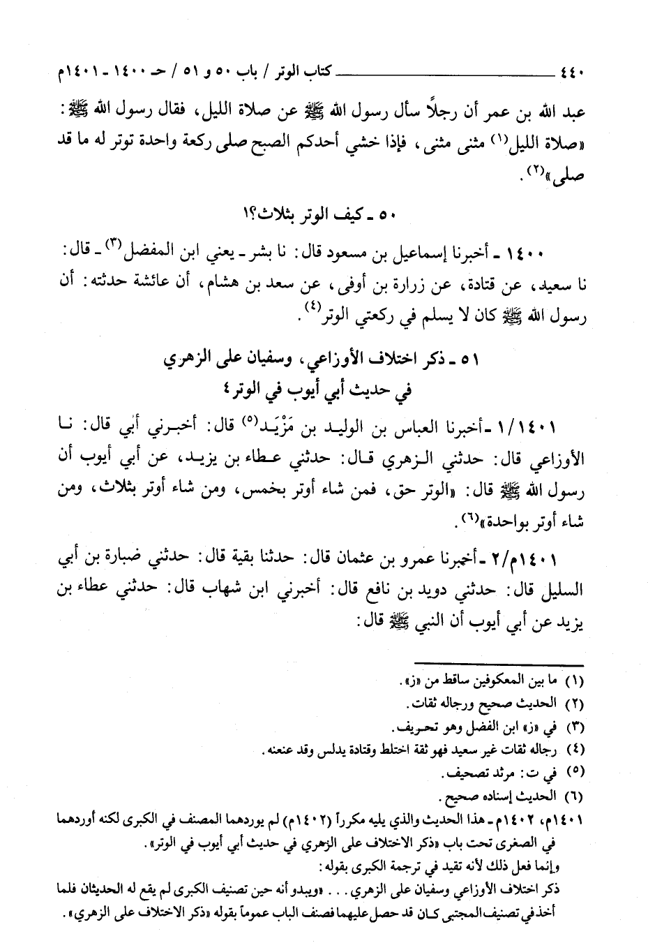 ( 51 ذكر اختلاف الأوزاعي وسفيان عن الزهري في حديث أبي أيوب في الوتر )