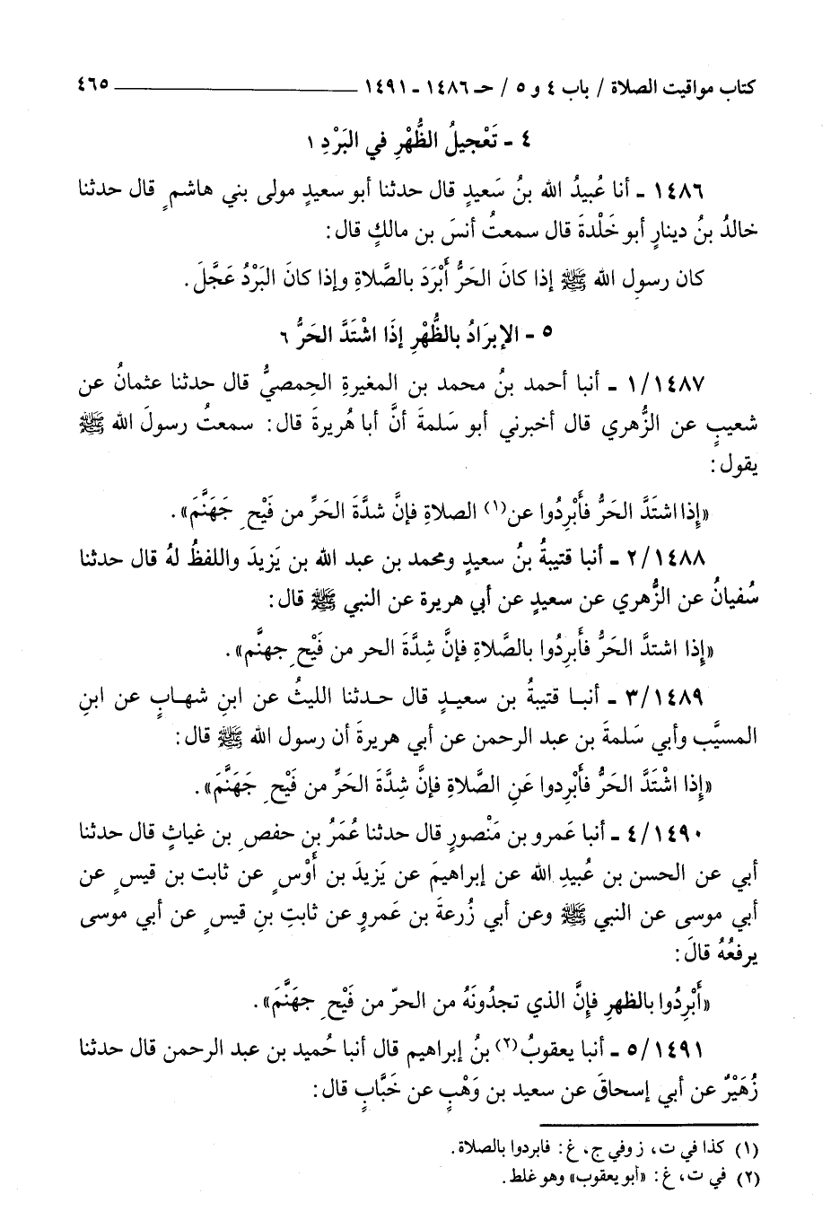 ( 5 الإبراد بالظهر إذا اشتد الحر )