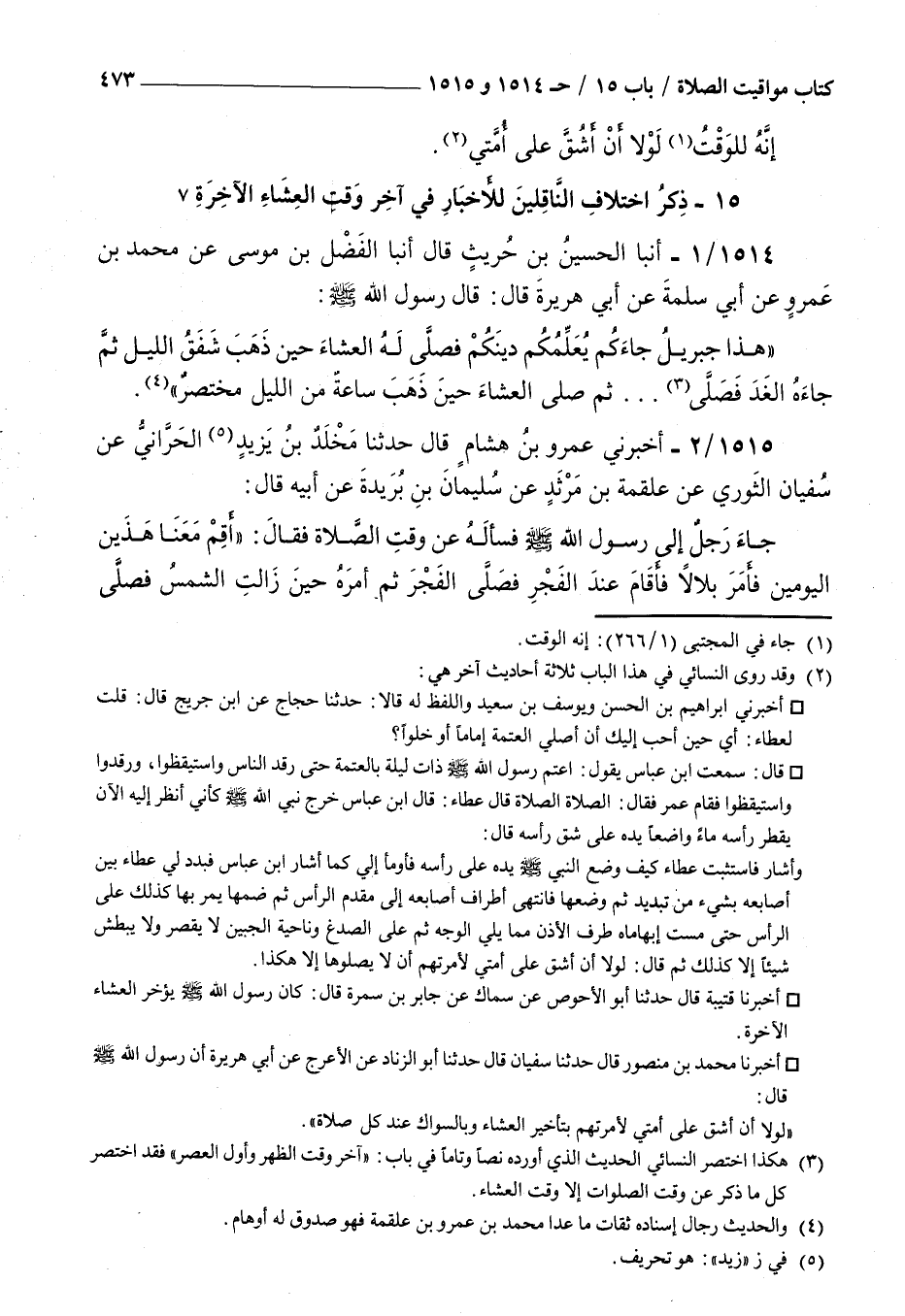 1514 - أنبأ الحسين بن حريث قال أنبأ الفضل بن موسى عن محمد بن عمرو عن أبي سلمة عن أبي هريرة قال قال رسول الله صلى الله عليه و سلم : هذا جبريل جاءكم يعلمكم دينكم فصلى له العشاء حين ذهب شفق الليل ثم جاءه الغد فصلى ثم صلى العشاء حين ذهب ساعة من الليل