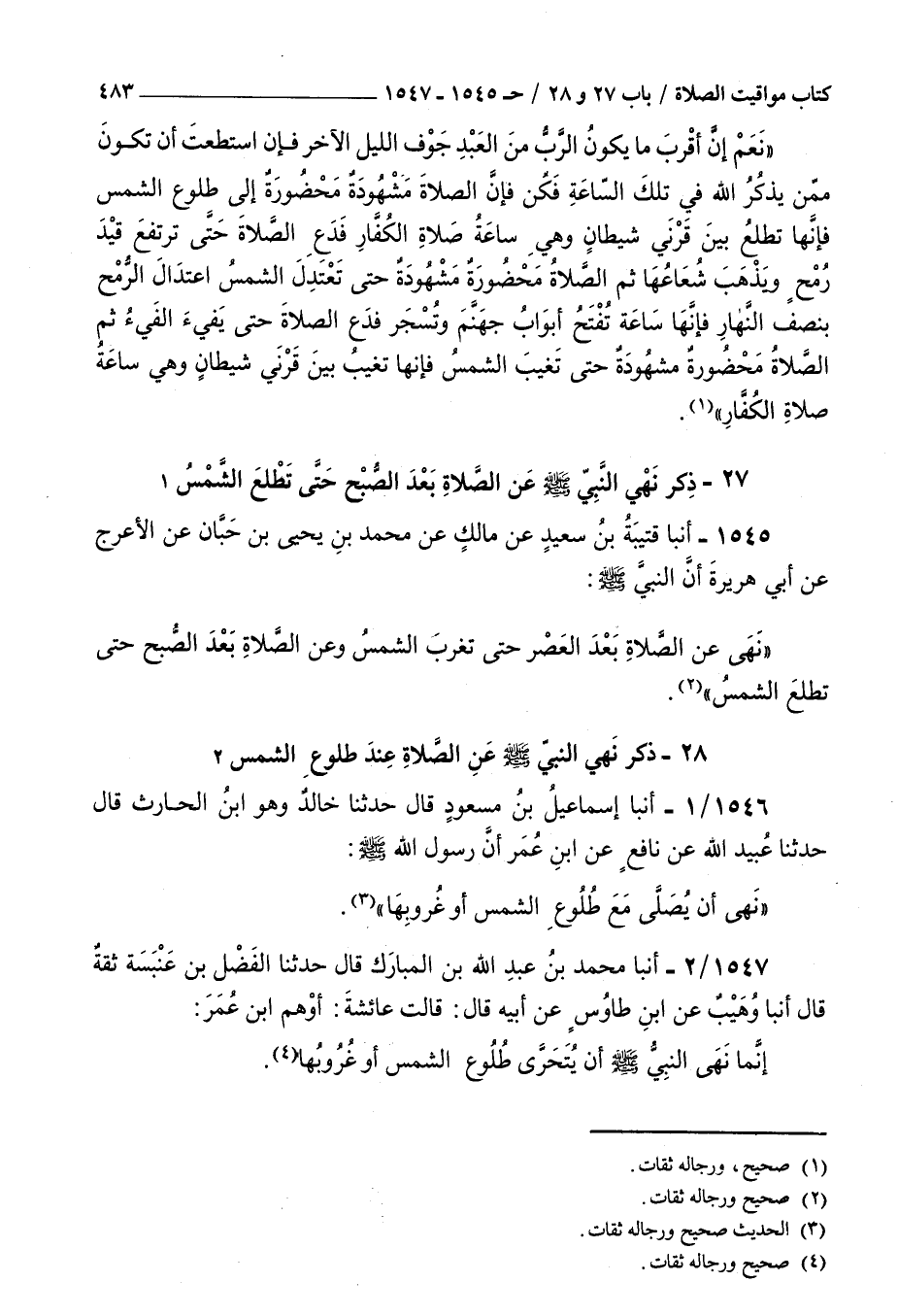 ( 28 ذكر نهي النبي صلى الله عليه و سلم عن الصلاة عند طلوع الشمس )