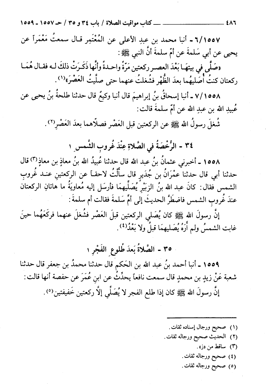 1558 - أخبرني عثمان بن عبد الله قال حدثنا عبيد الله بن معاذ بن معاذ قال حدثنا أبي قال حدثنا عمران بن جدير قال : سألت لاحقا عن الركعتين عند غروب الشمس فقال كان عبد الله بن الزبير يصليهما فأرسل إليه معاوية ما هاتان الركعتان عند غروب الشمس فاضطر الحديث إلى أم سلمة فقالت أم سلمة إن رسول الله صلى الله عليه و سلم كان يصلي الركعتين قبل العصر فشغل عنهما فركعهما حين غابت الشمس ولم أره يصليهما قبل ولا بعد