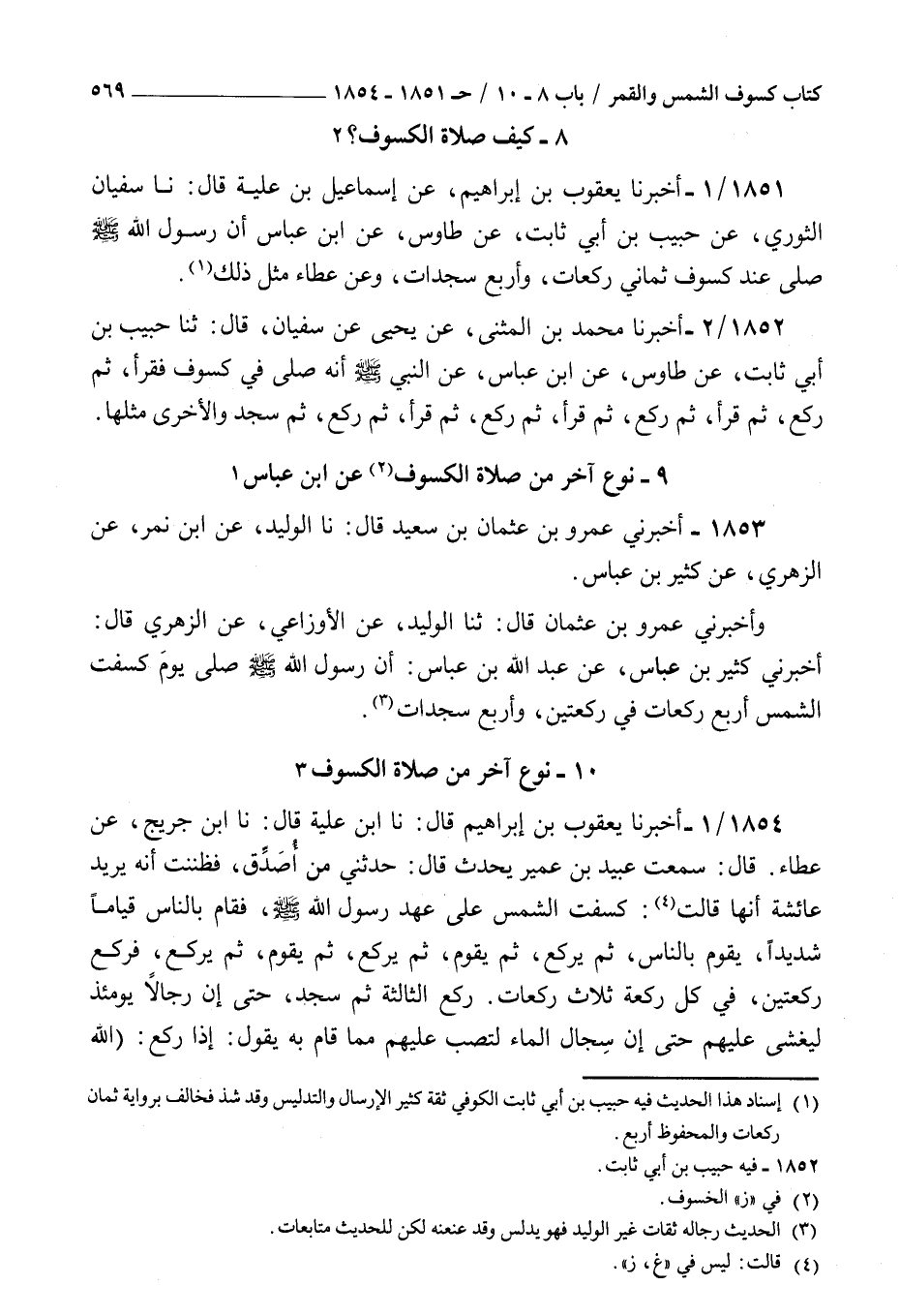 1853 - أخبرني عمرو بن عثمان بن سعيد قال نا الوليد عن بن نمر عن الزهري عن كثير بن عباس وأخبرني عمرو بن عثمان قال ثنا الوليد عن الأوزاعي عن الزهري قال أخبرني كثير بن عباس عن عبد الله بن عباس : أن رسول الله صلى الله عليه و سلم صلى يوم كسفت الشمس أربع ركعات في ركعتين وأربع سجدات
