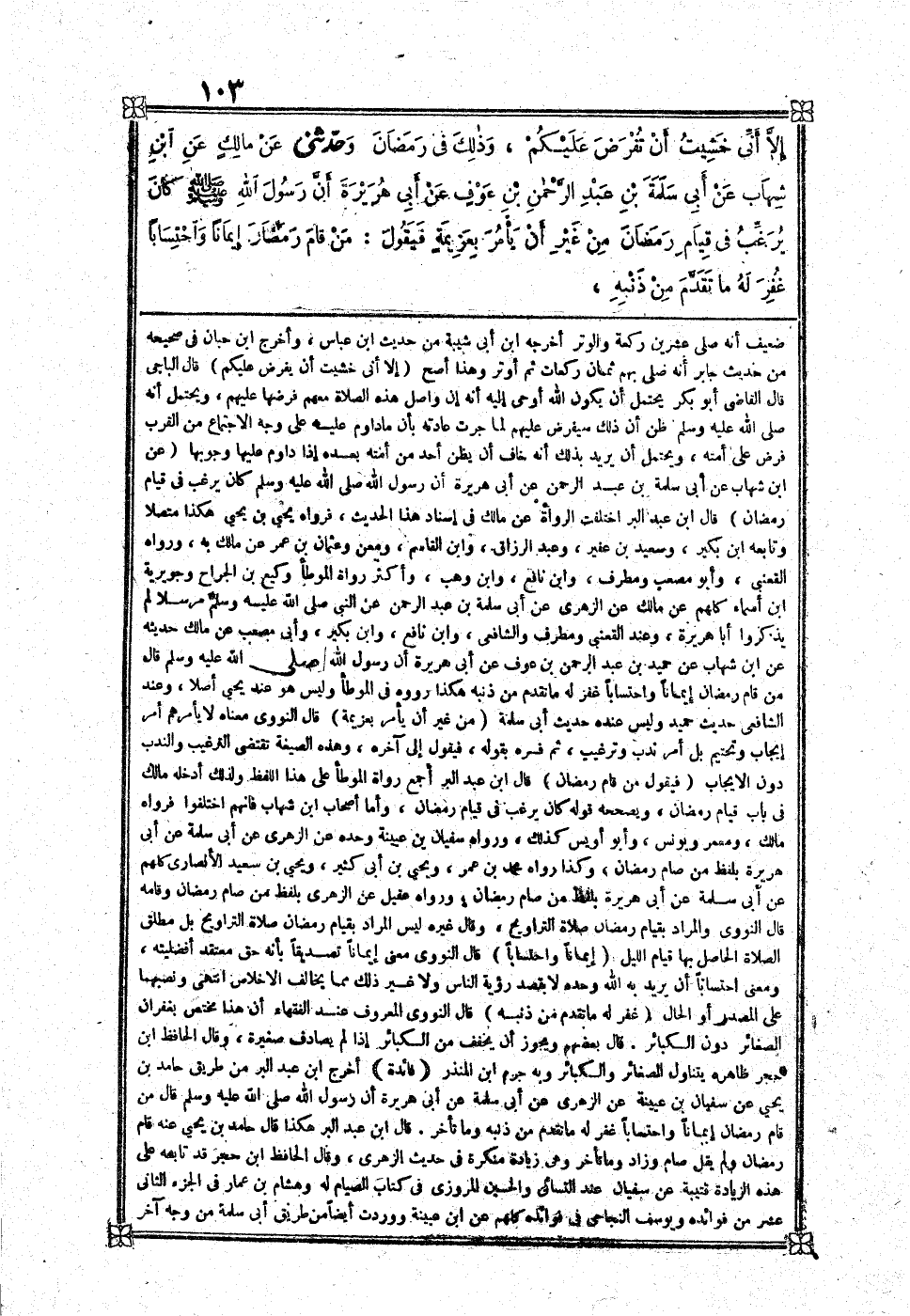 [248] أَن رَسُول الله صلى الله عَلَيْهِ وَسلم صلى فِي الْمَسْجِد إِلَى آخِره قَالَ بن عبد الْبر تَفْسِير هَذِه اللَّيَالِي الْمَذْكُورَات فِيهِ بِمَا رَوَاهُ النُّعْمَان بن بشير قَالَ قمنا مَعَ رَسُول الله صلى الله عَلَيْهِ وَسلم فِي شهر رَمَضَان لَيْلَة ثَلَاث وَعشْرين إِلَى ثلث اللَّيْل ثمَّ قمنا مَعَه لَيْلَة خمس وَعشْرين إِلَى نصف اللَّيْل ثمَّ قمنا لَيْلَة سبع وَعشْرين حَتَّى ظننا أَن لَا ندرك الْفَلاح أخرجه النَّسَائِيّ وَأما عدد مَا صلى فَفِي حَدِيث ضَعِيف أَنه صلى عشْرين رَكْعَة وَالْوتر أخرجه بن أبي شيبَة من حَدِيث بن عَبَّاس وَأخرج بن حبَان فِي صَحِيحه من حَدِيث جَابر أَنه صلى بهم ثَمَان رَكْعَات ثمَّ أوتر وَهَذَا أصح إِلَّا أَنِّي خشيت أَن يفْرض عَلَيْكُم قَالَ الْبَاجِيّ قَالَ القاض أَبُو بكر يحْتَمل أَن يكون الله أوحى إِلَيْهِ أه إِن وَاصل هَذِه الصَّلَاة مَعَهم فَرضهَا عَلَيْهِم وَيحْتَمل أَنه صلى الله عَلَيْهِ وَسلم ظن أَن ذَلِك سيفرض عَلَيْهِم لما جرت عَادَته بِأَن مَا داوم عَلَيْهِ على وَجه الِاجْتِمَاع من الْقرب فرض على أمته وَيحْتَمل أَن يُرِيد بذلك أَنه خَافَ أَن يظنّ أحد من أمته بعده إِذا داوم عَلَيْهَا وُجُوبهَا