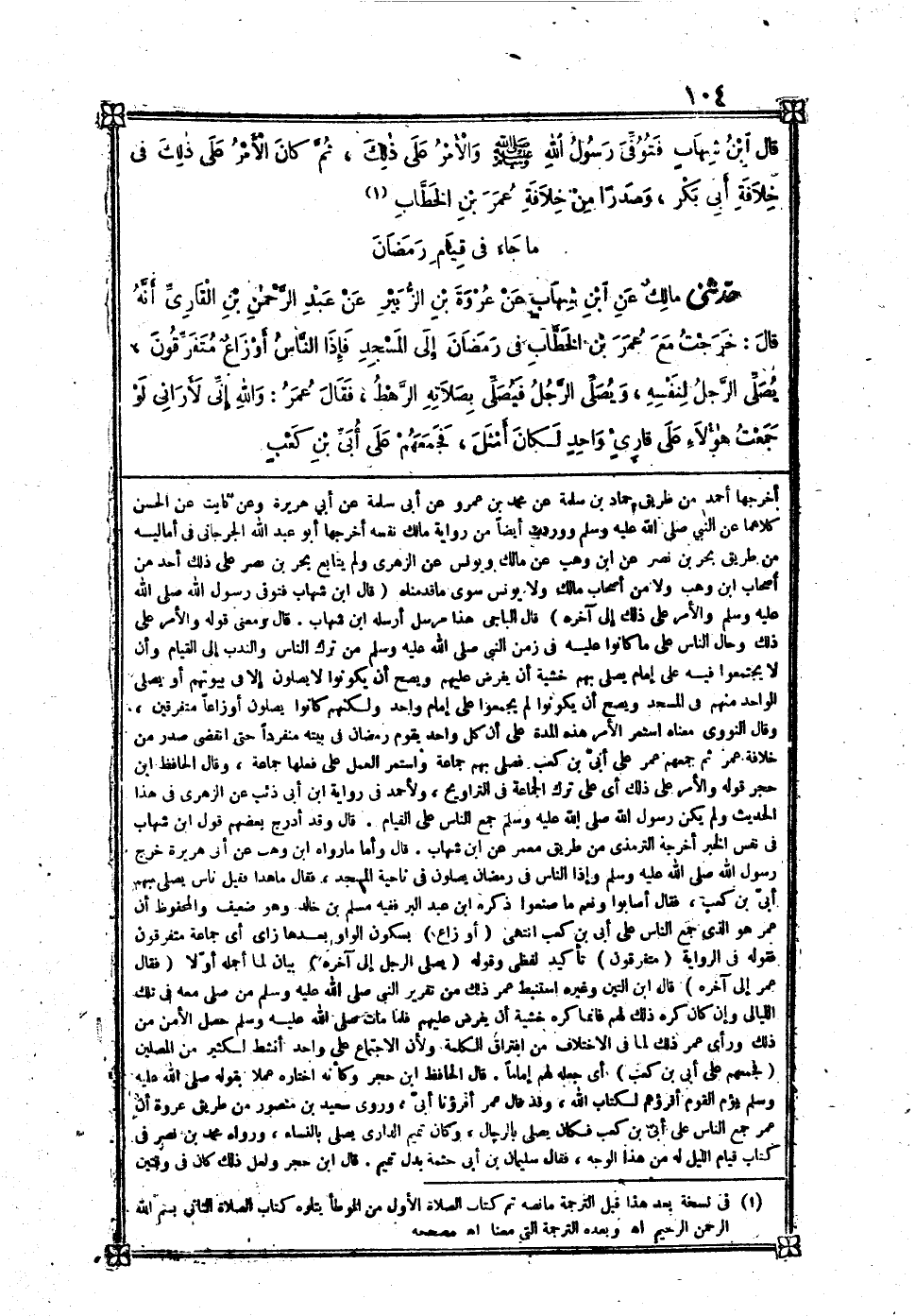 [249] عَن بن شهَاب عَن أبي سَلمَة بن عبد الرَّحْمَن عَن أبي هُرَيْرَة أَن رَسُول الله صلى الله عَلَيْهِ وَسلم كَانَ يرغب فِي قيام رَمَضَان قَالَ بن عبد الْبر اخْتلفت الروَاة عَن مَالك فِي إِسْنَاد هَذَا الحَدِيث فَرَوَاهُ يحيى بن يحى ي هَكَذَا مُتَّصِلا وَتَابعه بن بكير وَسَعِيد بن عفير وَعبد الرَّزَّاق وَابْن الْقسم ومعن وَعُثْمَان بن عمر عَن مَالك بِهِ وَرَوَاهُ القعْنبِي وَأَبُو مُصعب ومطرف وَابْن نَافِع وَابْن وهب وَأكْثر رُوَاة الْمُوَطَّأ وَكِيع بن الْجراح وَجُوَيْرِية بن أَسمَاء كلهم عَن مَالك عَن الزُّهْرِيّ عَن أبي سَلمَة بن عبد الرَّحْمَن عَن النَّبِي صلى الله عَلَيْهِ وَسلم مُرْسلا لم يذكرُوا أَبَا هُرَيْرَة وَعند القعْنبِي ومطرف وَالشَّافِعِيّ وَابْن نَافِع وَابْن بكير وَأبي مُصعب عَن مَالك حَدِيثه عَن بن شهَاب عَن حميد بن عبد الرَّحْمَن بن عَوْف عَن أبي هُرَيْرَة أَن رَسُول الله صلى الله عَلَيْهِ وَسلم قَالَ من قَامَ رَمَضَان إِيمَانًا واحتسابا غفر لَهُ مَا تقدم من ذَنبه هَكَذَا رَوَوْهُ فِي الْمُوَطَّأ وَلَيْسَ هُوَ عِنْد يحيى أصلا وَعند الشَّافِعِي حَدِيث حميد وَلَيْسَ عِنْده حَدِيث أبي سَلمَة من غير أَن يَأْمر بعزيمة قَالَ النَّوَوِيّ مَعْنَاهُ لَا يَأْمُرهُم أَمر إِيجَاب وتحتيم بل أَمر ندب وترغيب ثمَّ فسره بقوله فَيَقُول إِلَى آخِره وَهَذِه الصِّيغَة تَقْتَضِي التَّرْغِيب وَالنَّدْب دون الْإِيجَاب فَيَقُول من قَامَ رَمَضَان قَالَ بن عبد الْبر أجمع رُوَاة الْمُوَطَّأ على هَذَا اللَّفْظ وَلذَلِك أدخلهُ مَالك فِي بَاب قيام رَمَضَان ويصححه قَوْله كَانَ يرغب فِي قيام رَمَضَان وَأما أَصْحَاب بن شهَاب فانهم اخْتلفُوا فَرَوَاهُ مَالك وَمعمر وَيُونُس وَأَبُو أويس كَذَلِك وَرَوَاهُ سُفْيَان بن عُيَيْنَة وَحده عَن الزُّهْرِيّ عَن أبي سَلمَة عَن أبي هُرَيْرَة بِلَفْظ من صَامَ رضمان وَكَذَا رَوَاهُ مُحَمَّد بن عمر وَيحيى بن أبي كثير وَيحيى بن سعيد الْأنْصَارِيّ كلهم عَن أبي سَلمَة عَن أبي هُرَيْرَة بِلَفْظ من صَامَ رَمَضَان وَرَوَاهُ عقيل عَن الزُّهْرِيّ بِلَفْظ من صَامَ رَمَضَان وقامه قَالَ النَّوَوِيّ وَالْمرَاد بِقِيَام رَمَضَان صَلَاة التَّرَاوِيح وَقَالَ غَيره لَيْسَ المُرَاد بِقِيَام رَمَضَان صَلَاة التَّرَاوِيح بل مُطلق الصَّلَاة الْحَاصِل بهَا قيام اللَّيْل إِيمَانًا واحتسابا قَالَ النَّوَوِيّ معنى إِيمَانًا تَصْدِيقًا بِأَنَّهُ حق مُعْتَقد أفضليته وَمعنى احتسابا أَن يُرِيد بِهِ الله وَحده لَا بِقصد رُؤْيَة النَّاس وَلَا غير ذَلِك مِمَّا يُخَالف الْإِخْلَاص انْتهى ونصبهما على الْمصدر أَو الْحَال غفر لَهُ مَا تقدم من ذَنبه قَالَ النَّوَوِيّ الْمَعْرُوف عِنْد الْفُقَهَاء أَن هَذَا مُخْتَصّ بغفران الصَّغَائِر دون الْكَبَائِر قَالَ بَعضهم وَيجوز أَن يُخَفف من الْكَبَائِر إِذا لم يُصَادف صَغِيرَة وَقَالَ الْحَافِظ بن حجر ظَاهره يتَنَاوَل الصَّغَائِر والكبائر وَبِه جزم بن الْمُنْذر فَائِدَة اخْرُج بن عبد الْبر من طَرِيق حَامِد بن يحيى عَن سُفْيَان بن عُيَيْنَة عَن الزُّهْرِيّ عَن أبي سَلمَة عَن أبي هُرَيْرَة أَن رَسُول الله صلى الله عَلَيْهِ وَسلم قَالَ من قَامَ رَمَضَان إِيمَانًا واحتسابا غفر لَهُ مَا تقدم من ذَنبه وَمَا تَأَخّر قَالَ بن عبد الْبر هَكَذَا قَالَ حَامِد بن يحيى عَنهُ قَامَ رَمَضَان وَلم يقل صَامَ وَزَاد وَمَا تَأَخّر وَهِي زِيَادَة مُنكرَة فِي حَدِيث الزُّهْرِيّ وَقَالَ الْحَافِظ بن حجر قد تَابعه على هَذِه الزِّيَادَة قُتَيْبَة عَن سُفْيَان عِنْد النَّسَائِيّ وَالْحُسَيْن الْمروزِي فِي كتاب الصّيام لَهُ وَهِشَام بن عمار فِي الْجُزْء الثَّانِي عشر من فَوَائده ويوسف النجاحي فِي فَوَائده كلهم عَن بن عُيَيْنَة ووردت أَيْضا من طَرِيق أبي سَلمَة من وَجه آخر أخرجهَا أَحْمد من ط