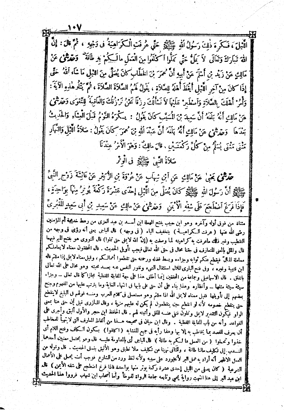 [258] عَن إِسْمَاعِيل بن أبي حَكِيم أَنه بلغه أَن رَسُول الله صلى الله عَلَيْهِ وَسلم سمع امْرَأَة من اللَّيْل قَالَ بن عبد الْبر هَذَا مُنْقَطع منن رِوَايَة إِسْمَاعِيل وَهُوَ مُتَّصِل من طرق صِحَاح ثَابِتَة من حَدِيث مَالك وَغَيره فَأخْرجهُ البُخَارِيّ من طَرِيق القعْنبِي عَن مَالك عَن هِشَام بن عُرْوَة عَن أَبِيه عَن عَائِشَة وَأخرجه البُخَارِيّ وَمُسلم من طَرِيق يحيى بن سعيد الْقطَّان عَن هِشَام عَن أَبِيه عَن عَائِشَة الحولاء بِالْمُهْمَلَةِ وَالْمدّ بنت تويت بتاء مثناة من فَوق أَوله وَآخره وَهُوَ بن حبيب بِفَتْح الْمُهْملَة بن أَسد بن عبد الْعُزَّى من رَهْط خَدِيجَة أم المومنين رَضِي الله عَنْهَا عرفت الْكَرَاهِيَة بتَخْفِيف الْيَاء فِي وَجهه قَالَ الْبَاجِيّ يَعْنِي أَنه رُؤِيَ فِي وَجهه من التقطيب وَغير ذَلِك مَا عرفت بِهِ كراهيته لما وصفت بِهِ إِن الله لَا يمل حَتَّى تملوا قَالَ النَّوَوِيّ هُوَ بِفَتْح الْمِيم فيهمَا قَالَ والملل بِالْمَعْنَى الْمُتَعَارف فِي حَقنا محَال فِي حق الله تَعَالَى فَيجب تَأْوِيل الحَدِيث قَالَ الْمُحَقِّقُونَ مَعْنَاهُ لَا يعاملكم مُعَاملَة المَال فَيقطع عَنْكُم ثَوَابه وجزاءه وَبسط فَضله وَرَحمته حَتَّى تقطعوا أَعمالكُم وَقيل مَعْنَاهُ لَا يمل إِذا مللتم قَالَه بن قُتَيْبَة وَغَيره وَفِي فتح الْبَارِي الملال استثقال الشَّيْء ونفور النَّفس عَنهُ بعد محبته وَهُوَ محَال على الله تَعَالَى بِاتِّفَاق قَالَ الْإِسْمَاعِيلِيّ وَجَمَاعَة من الْمُحَقِّقين إِنَّمَا أطلق هَذَا على جِهَة الْمُقَابلَة اللفظية مجَازًا كَمَا قَالَ تَعَالَى وَجَزَاءُ سَيِّئَةٍ سَيِّئَةٌ مِثْلُهَا وأنظاره وَهَذَا بِنَاء على أَن حَتَّى على بَابهَا فِي انْتِهَاء الْغَايَة وَمَا يَتَرَتَّب عَلَيْهَا من الْمَفْهُوم وجنح بَعضهم إِلَى تَأْوِيلهَا فَقيل مَعْنَاهُ لَا يمل الله إِذا مللتم وَهُوَ مُسْتَعْمل فِي كَلَام الْعَرَب وَمِنْه قَوْلهم فِي البليغ لَا يَنْقَطِع حَتَّى يَنْقَطِع خصومه لِأَنَّهُ لَو انْقَطع حِين ينقطعون لم يكن لَهُ عَلَيْهِم مزية وَقَالَ الْمَازرِيّ قيل إِن حَتَّى هُنَا بِمَعْنى الْوَاو فَيكون التَّقْدِير لَا يمل وتملون فنفى عَنهُ الْملَل وأثبته لَهُم قَالَ الْحَافِظ بن حجر وَالْأول أليق وأجرى على الْقَوَاعِد وَأَنه من بَاب الْمُقَابلَة اللفظية وَقَالَ بن حبَان فِي صَحِيحه هَذَا من أَلْفَاظ المعارف الَّتِي لَا يتهيأ للمخاطب أَن يعرف الْقَصْد بِمَا يُخَاطب بِهِ إِلَّا بهَا وَهَذَا رَأْيه فِي جَمِيع الْمُتَشَابه اكلفوا بِسُكُون الْكَاف وَفتح اللَّام أَي خُذُوا وتحملوا من الْعَمَل مَا لكم بِهِ طَاقَة قَالَ الْبَاجِيّ أَي بالمداومة عَلَيْهِ قَالَ وَهُوَ يحْتَمل مَعْنيين أَحدهمَا النّدب إِلَى تَكْلِيف مالنا طَاقَة وَالثَّانِي نهينَا عَن تَكْلِيف مَالا نطيق وَهُوَ أليق بنسق الحَدِيث قَالَ وَقَوله من الْعَمَل الْأَظْهر أَنه أَرَادَ بِهِ عمل الْبر لأه ورد على سَببه وَلِأَنَّهُ لفظ ورد من الشَّارِع فَوَجَبَ أَن يحمل على الْأَعْمَال الشَّرْعِيَّة