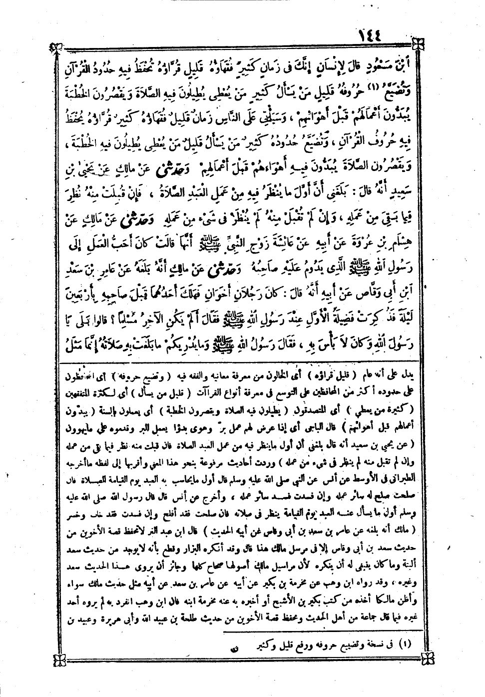 [418] عَن يحيى بن سعيد أَنه قَالَ بَلغنِي أَن أول مَا ينظر فِيهِ من عمل العَبْد اصلاة فَإِن قبلت مِنْهُ نظر فِيمَا بَقِي من عمله وَإِن لم تقبل مِنْهُ لم ينظر فِي شَيْء من عمله وَردت أَحَادِيث مَرْفُوعَة بِنَحْوِ هَذَا الْمَعْنى وأقربها غلى لَفظه مَا أخرجه الطَّبَرَانِيّ فِي الْأَوْسَط عَن أنس عَن النَّبِي صلى الله عَلَيْهِ وَسلم قَالَ أول مَا يُحَاسب بِهِ العَبْد يَوْم الْقِيَامَة الصَّلَاة فَإِن صلحت صلح لَهُ سَائِر عمله وَإِن فَسدتْ فسد سَائِر عمله وَأخرج عَن أنس قَالَ قَالَ رَسُول الله صلى الله عَلَيْهِ وَسلم أول مَا يسْأَل عَنهُ العَبْد يَوْم الْقِيَامَة ينظر فِي صلَاته فَإِن صلحت فقد أَفْلح وَإِن فَسدتْ فقد خَابَ وخسر