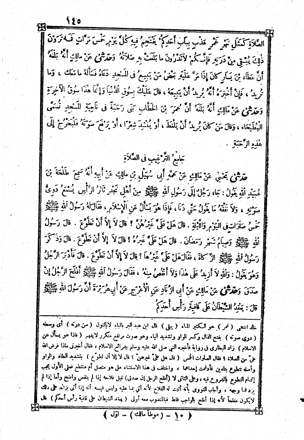 [420] مَالك أَنه بلغه عَن عَامر بن سعد بن أبي وَقاص عَن أَبِيه الحَدِيث قَالَ بن عبد الْبر لَا تحفظ قصَّة الْأَخَوَيْنِ من حَدِيث سعد بن أبي وَقاص إِلَّا فِي مُرْسل مَالك هَذَا قَالَ وَقد أنكرهُ الْبَزَّار وَقطع بِأَنَّهُ لَا يُوجد من حَدِيث سعد أَلْبَتَّة وَمَا كَانَ يَنْبَغِي لَهُ أَن يُنكره لِأَن مَرَاسِيل مَالك أُصُولهَا صِحَاح كلهَا وَجَائِز أَن يرْوى هَذَا الحَدِيث سعد وَغَيره وَقد رَوَاهُ بن وهب عَن مخرمَة بن بكير عَن أَبِيه عَن عَامر بن سعد عَن أَبِيه مثل حَدِيث مَالك سَوَاء وأظن مَالِكًا أَخذه من كتب بكير بن الْأَشَج أَو أخبرهُ بِهِ عَنهُ مخرمَة ابْنه فَإِن بن وهب انْفَرد بِهِ لم يروه أحد غَيره فِيمَا قَالَ جمَاعَة من أهل الحَدِيث وَتحفظ قصَّة الْأَخَوَيْنِ من حَدِيث طَلْحَة بن عبيد الله وَأبي هُرَيْرَة وَعبيد بن خَالِد انْتهى غمر هُوَ الْكثير المَاء يبْقى قَالَ بن عبد الْبر بِالْبَاء لَا بالنُّون من درنه أَي وسخه