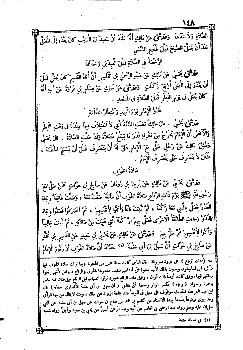 [433] عَن عبيد الله بن عبد الله بن عتبَة بن مَسْعُود أَن عمر بن الْخطاب سَأَلَ أَبَا وَاقد إِلَى آخِره قَالَ النَّوَوِيّ فِي شرح مُسلم هَذِه الرِّوَايَة مُرْسلَة لِأَن عبيد الله لم يدْرك عمر وَفِي رِوَايَة لمُسلم عَن عبيد الله عَن أبي وَاقد قَالَ سَأَلَني عمر وَهَذِه مُتَّصِلَة فَإِنَّهُ أدْرك أَبَا وَاقد بِلَا شكّ وسَمعه بِلَا خلاف قَالُوا وَأما سُؤال عمر أَبَا وَاقد فَيحْتَمل أَنه شكّ فِي ذَلِك فاستثبته أَو أَرَادَ إِعْلَام النَّاس بذلك أَو نَحْو هَذَا من الْمَقَاصِد قَالُوا وَيبعد أَن عمر لم يعلم ذَلِك مَعَ شُهُوده صَلَاة الْعِيد مَعَ رَسُول الله صلى الله عَلَيْهِ وَسلم مَرَّات وقربه مِنْهُ