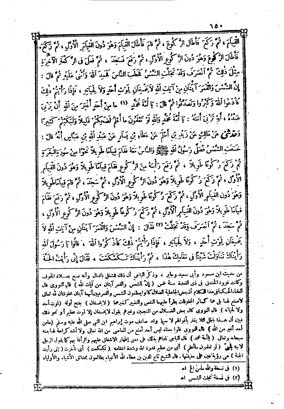 [444] إِن الشَّمْس وَالْقَمَر آيتان من آيَات الله قَالَ النَّوَوِيّ قَالَ الْعلمَاء الْحِكْمَة فِي هَذَا الْكَلَام أَن بعض الْجَاهِلِيَّة الضلال كَانُوا يعظمون الشَّمْس وَالْقَمَر فَبين أَنَّهُمَا آيتان مخلوقتان لله تَعَالَى لَا صنع لَهما بل هما كَسَائِر الْمَخْلُوقَات يطْرَأ عَلَيْهِمَا النَّقْص والتغيير كغيرهما لَا يخسفان بِفَتْح أَوله لمَوْت أحد وَلَا لِحَيَاتِهِ قَالَ النَّوَوِيّ كَانَ بعض الضلال من المنجمين وَغَيرهم يَقُول لَا يخسفان إِلَّا لمَوْت عَظِيم أَو نَحْو ذَلِك فَبين أَن هَذَا بَاطِل لِئَلَّا يغتر بأقوالهم لَا سِيمَا وَقد صَادف موت إِبْرَاهِيم بن النَّبِي صلى الله عَلَيْهِ وَسلم مَا من أحد أغير من الله قَالَ النَّوَوِيّ قَالُوا مَعْنَاهُ لَيْسَ أحد أمنع من الْمعاصِي من الله تَعَالَى وَلَا أَشد كَرَاهَة لَهَا مِنْهُ سُبْحَانَهُ وَتَعَالَى يَا أمة مُحَمَّد قَالَ الْبَاجِيّ ناداهم بذلك على معنى إِظْهَار الاشفاق عَلَيْهِم والرأفة بهم كَمَا يَقُول الرجل لِابْنِهِ يَا بني لَو تعلمُونَ مَا أعلم أَيمن عَظِيم قدرَة الله وَشدَّة انتقامه
