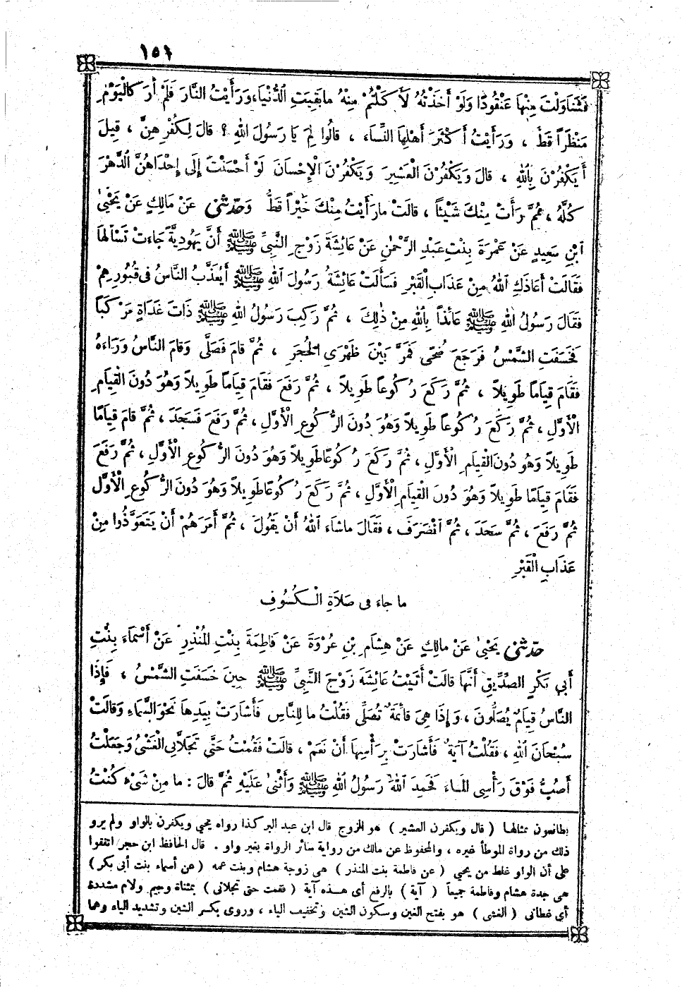 [445] تكعكعت أَي تَأَخَّرت إِنِّي رَأَيْت الْجنَّة هِيَ رُؤْيَة عين على حَقِيقَتهَا قَالَ الشَّيْخ تَاج الدّين بن عَطاء الله الْأَنْبِيَاء يطالعون بحقائق الْأَشْيَاء والأولياء يطالعون بمثالها قَالَ ويكفرن العشير هُوَ الزَّوْج قَالَ بن عبد الْبر كَذَا رَوَاهُ يحيى ويكفرن بِالْوَاو وَلم يرو ذَلِك من رُوَاة الْمُوَطَّأ غَيره وَالْمَحْفُوظ عَن مَالك من رِوَايَة سَائِر الروَاة بِغَيْر وَاو قَالَ الْحَافِظ بن حجر اتَّفقُوا على أَن الْوَاو غلط من يحيى