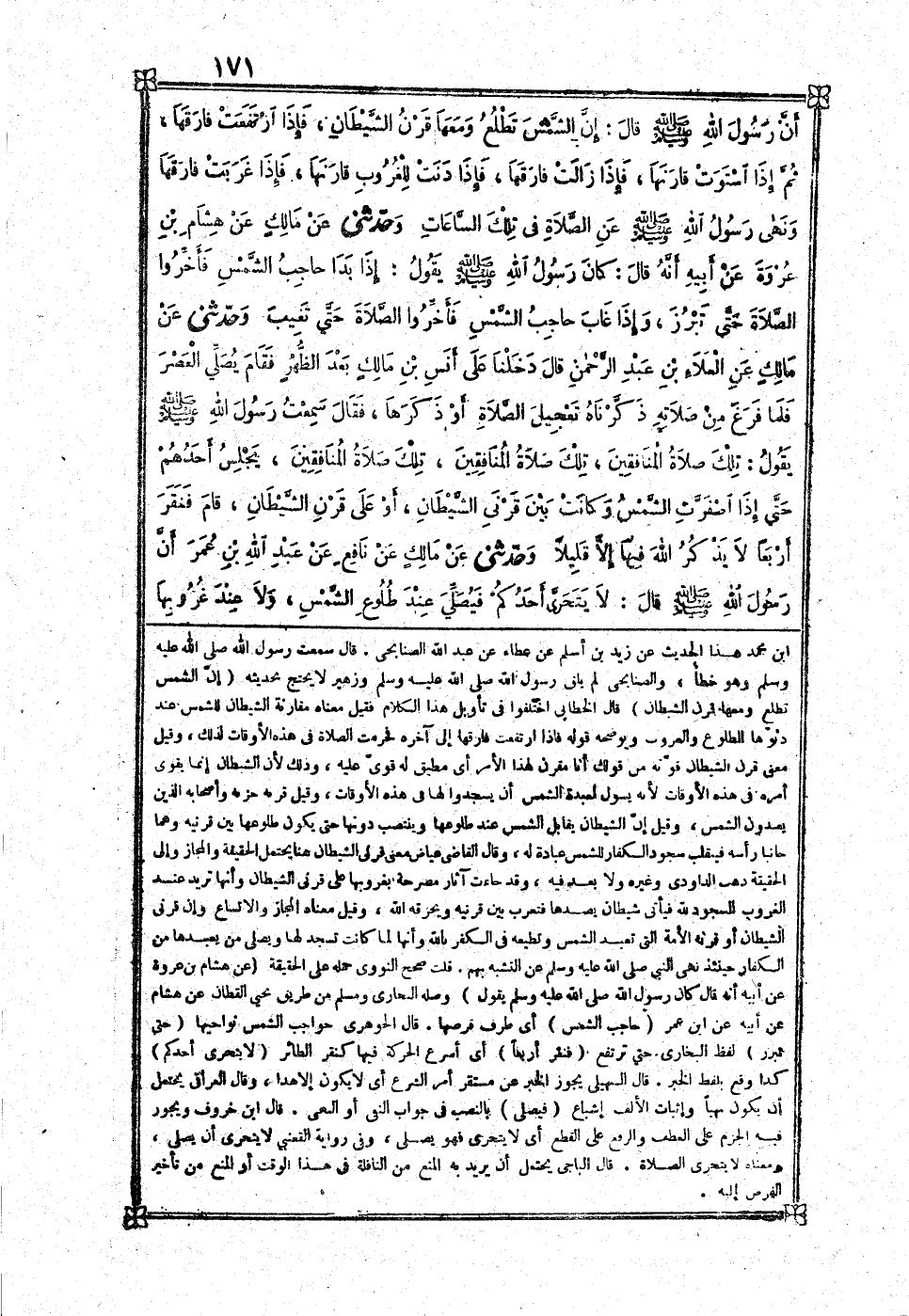 [512] عَن عَطاء بن يسَار عَن عبد الله الصنَابحِي قَالَ بن عبد الْبر هَكَذَا قَالَ جُمْهُور الروَاة عَن مَالك وَقَالَت طَائِفَة مِنْهُم مطرف وَإِسْحَاق بن عِيسَى الطباع عَن عَطاء عَن أبي عبد الله الصنَابحِي قَالَ وَهُوَ الصَّوَاب وَهُوَ عبد الرَّحْمَن بن عسيلة تَابِعِيّ ثِقَة لَيست لَهُ صُحْبَة قَالَ وروى زُهَيْر بن مُحَمَّد هَذَا الحَدِيث عَن زيد بن اسْلَمْ عَن عَطاء عَن عبد الله الصنَابحِي قَالَ سَمِعت رَسُول الله صلى الله عَلَيْهِ وَسلم وَهُوَ خطأ والصنابحي لم يلق رَسُول الله صلى الله عَلَيْهِ وَسلم وَزُهَيْر لَا يحْتَج بحَديثه إِن الشَّمْس تطلع وَمَعَهَا قرن الشَّيْطَان قَالَ الْخطابِيّ اخْتلفُوا فِي تَأْوِيل هَذَا الْكَلَام فَقيل مَعْنَاهُ مُقَارنَة الشَّيْطَان للشمس عِنْد دنوها للطلوع والغروب ويوضحه قَوْله فَإِذا ارْتَفَعت فَارقهَا إِلَى آخِره فَحرمت الصَّلَاة فِي هَذِه الْأَوْقَات لذَلِك وَقيل معنى قرن الشَّيْطَان قوته من قَوْلك أَنا مقرن لهَذَا الْأَمر أَي مطبق لَهُ قوي عَلَيْهِ وَذَلِكَ لِأَن الشَّيْطَان انما يقوى أمره فِي هَذِه الْأَوْقَات لِأَنَّهُ يسول لعبدة الشَّمْس ان يسجدوا لَهَا فِي هَذِه الْأَوْقَات وَقيل قرنه حزبه وَأَصْحَابه الَّذين يعْبدُونَ الشَّمْس وَقيل ان الشَّيْطَان يُقَابل الشَّمْس عِنْد طُلُوعهَا وينتصب دونهَا حَتَّى يكون طُلُوعهَا بَين قرنيه وهما جانبا رَأسه فينقلب سُجُود الْكفَّار للشمس عبَادَة لَهُ وَقَالَ القَاضِي عِيَاض معنى قَرْني الشَّيْطَان هُنَا يحْتَمل الْحَقِيقَة وَالْمجَاز والى الْحَقِيقَة ذهب الدَّاودِيّ وَغَيره وَلَا بعد فِيهِ وَقد جَاءَت آثَار مصرحة بغروبها على قَرْني الشَّيْطَان وَأَنَّهَا تُرِيدُ عِنْد الْغُرُوب للسُّجُود لله فَيَأْتِي شَيْطَان يصدها فتغرب بَين قرنيه ويحرقه الله وَقيل مَعْنَاهُ الْمجَاز والاتساع وَإِن قَرْني الشَّيْطَان أَو قرنه الْأمة الَّتِي تعبد الشَّمْس وَتُطِيعهُ فِي الْكفْر بِاللَّه وَأَنَّهَا لما كَانَت تسْجد لَهَا وَيُصلي من يَعْبُدهَا من الْكفَّار حِينَئِذٍ نهى النَّبِي صلى الله عَلَيْهِ وَسلم عَن التَّشَبُّه بهم قلت صحّح النَّوَوِيّ حمله على الْحَقِيقَة
