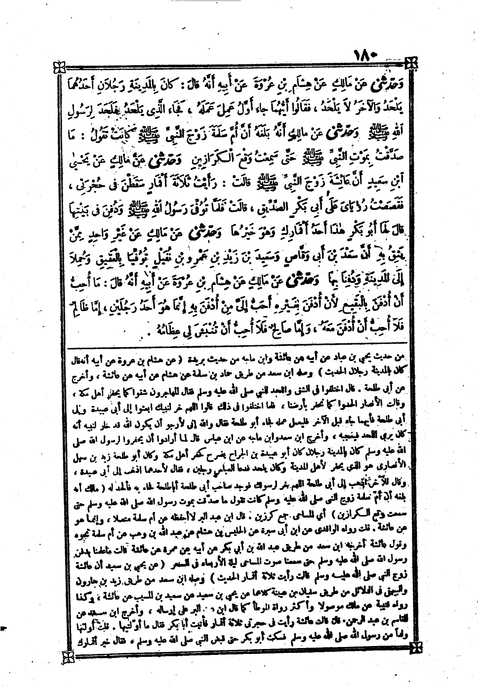 [545] مَالك أَنه بلغه أَن رَسُول الله صلى الله عَلَيْهِ وَسلم توفّي يَوْم الْإِثْنَيْنِ وَدفن يَوْم الثُّلَاثَاء الحَدِيث قَالَ بن عبد الْبر هَذَا الحَدِيث لَا أعلمهُ يرْوى على هَذَا النسق بِوَجْه من الْوُجُوه غير بَلَاغ مَالك هَذَا وَلكنه صَحِيح من وُجُوه مُخْتَلفَة وَأَحَادِيث شَتَّى جمعهَا مَالك ووفاته يَوْم الْإِثْنَيْنِ ثَابِتَة من حَدِيث أنس فِي الصَّحِيح وَلَا خلاف بَين الْعلمَاء فِيهِ واما دَفنه يَوْم الثُّلَاثَاء فمختلف فِيهِ قلت روى بن سعد فِي الطَّبَقَات عَن بن شهَاب أَن رَسُول الله صلى الله عَلَيْهِ وَسلم توفّي يَوْم الْإِثْنَيْنِ حِين زاغت الشَّمْس وروى من طَرِيق الزُّهْرِيّ عَن عُرْوَة عَن عَائِشَة قَالَت توفّي رَسُول الله صلى الله عَلَيْهِ وَسلم يَوْم الْإِثْنَيْنِ لِاثْنَتَيْ عشرَة مَضَت من ربيع الأول وروى من حَدِيث عَليّ بن أبي طَالب قَالَ اشْتَكَى رَسُول الله صلى الله عَلَيْهِ وَسلم يَوْم الْأَرْبَعَاء لليلة بقيت من صفر وَتُوفِّي يَوْم الْإِثْنَيْنِ لِاثْنَتَيْ عشرَة مَضَت من ربيع الأول وَدفن يَوْم الثُّلَاثَاء وَرُوِيَ أَيْضا عَن أبي سَلمَة بن عبد الرَّحْمَن وَسَعِيد بن الْمسيب أَنه توفّي يَوْم الْإِثْنَيْنِ وَدفن يَوْم الثُّلَاثَاء وَرُوِيَ عَن عِكْرِمَة قَالَ توفّي رَسُول الله صلى الله عَلَيْهِ وَسلم يَوْم الْإِثْنَيْنِ فحبس بَقِيَّة يَوْمه وَلَيْلَته وَمن الْغَد حَتَّى دفن من اللَّيْل وَرُوِيَ عَن أبي بن عَبَّاس بن سهل أَبِيه عَن جده قَالَ توفّي رَسُول الله صلى الله عَلَيْهِ وَسلم يَوْم الْإِثْنَيْنِ فَمَكثَ يَوْم الْإِثْنَيْنِ وَالثُّلَاثَاء حَتَّى دفن يَوْم الْأَرْبَعَاء قَالَ بن كثير القَوْل بِأَنَّهُ دفن يَوْم الثُّلَاثَاء غَرِيب وَالْمَشْهُور عَن الْجُمْهُور أَنه دفن لَيْلَة الْأَرْبَعَاء وروى بن عسد عَن مُحَمَّد بن قيس أَن رَسُول الله صلى الله عَلَيْهِ وَسلم اشْتَكَى يَوْم الْأَرْبَعَاء لإحدى عشرَة لَيْلَة بقيت من صفر فاشتكى ثَلَاث عشرَة لَيْلَة وَتُوفِّي يَوْم الْإِثْنَيْنِ لليلتين مضتا من شهر ربيع الأول وَصلى النَّاس عَلَيْهِ أفذاذا لَا يؤمهم أحد وَصله الْبَيْهَقِيّ عَن بن عَبَّاس وَابْن سعد عَن سهل بن سعد السَّاعِدِيّ وَرَوَاهُ عَن سعيد بن الْمسيب وَغَيره قَالَ بن كثير وَهُوَ أَمر مجمع عَلَيْهِ لَا خلاف فِيهِ قَالَ وَاخْتلف فِي تَعْلِيله فَقيل هُوَ من بَاب التَّعَبُّد الَّذِي يعسر تعقل مَعْنَاهُ وَقيل ليباشر كل وَاحِد الصَّلَاة عَلَيْهِ مِنْهُ اليه وَقَالَ الْعقيلِيّ ان الله أخبر أَنه وَمَلَائِكَته يصلونَ عَلَيْهِ وَأمر كل وَاحِد من الْمُؤمنِينَ ان يُصَلِّي عَلَيْهِ فَوَجَبَ على كل أحد أَن يُبَاشر الصَّلَاة عَلَيْهِ مِنْهُ اليه وَالصَّلَاة عَلَيْهِ بعد مَوته من هَذَا الْقَبِيل قَالَ وَأَيْضًا فَإِن الْمَلَائِكَة لنا فِي ذَلِك أَئِمَّة انْتهى وَقَالَ الشَّافِعِي فِي الْأُم ذَلِك لعظم أَمر رَسُول الله صلى الله عَلَيْهِ وَسلم وتنافسهم فِيمَن يتَوَلَّى الصَّلَاة عَلَيْهِ وصلوا عَلَيْهِ مرّة بعد مرّة وروى بن سعد عَن عبد الله بن عمر بن عَليّ بن أبي طَالب عَن عَليّ أَنه قَالَ لما وضع رَسُول الله صلى الله عَلَيْهِ وَسلم على السرير لَا يقوم عَلَيْهِ أحد هُوَ إمامكم حَيا وَمَيتًا فَكَانَ يدْخل النَّاس رسلًا رسلًا فيصلون عَلَيْهِ صفا صفا لَيْسَ لَهُم إِمَام وَيُكَبِّرُونَ وعي قَائِم بحيال رَسُول الله صلى الله عَلَيْهِ وَسلم يَقُول السَّلَام عَلَيْك أَيهَا النَّبِي وَرَحْمَة الله وَبَرَكَاته اللَّهُمَّ إِنَّا نشْهد أَن قد بلغ مَا أنزل إِلَيْهِ ونصح لأمته وجاهد فِي سَبِيل الله حَتَّى أعز الله دينه وتمت كَلمته اللَّهُمَّ فاجعلنا مِمَّن يتبع مَا أنزل إِلَيْهِ وثبتنا بعده واجمع بَيْننَا وَبَينه فَيَقُول النَّاس آمين حَتَّى صلى عَلَيْهِ الرِّجَال ثمَّ النِّسَاء ثمَّ الصّبيان وَظ