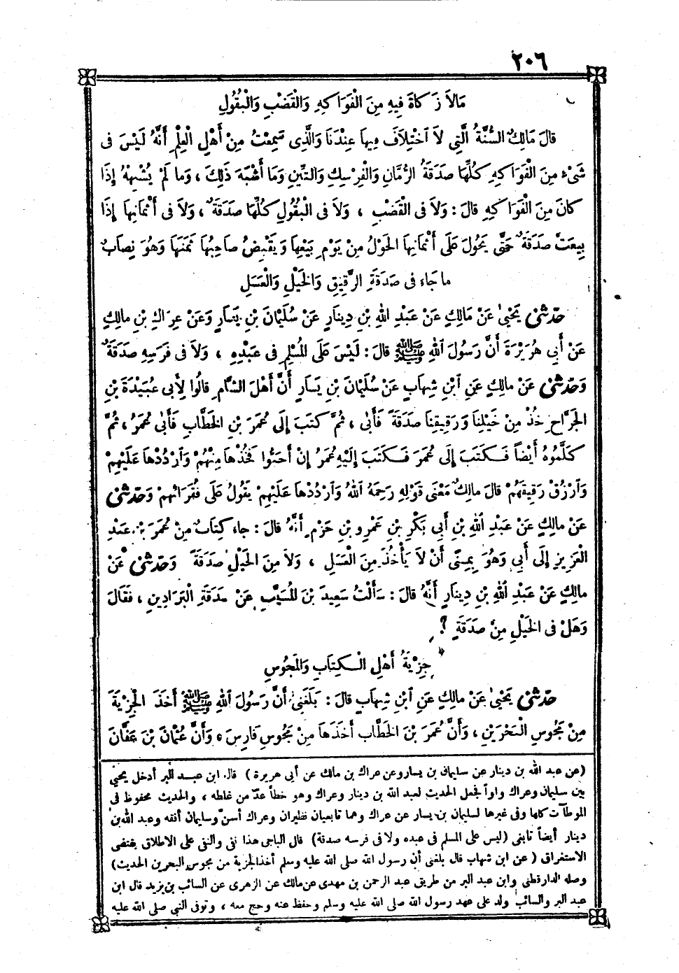 [611] عَن عبد الله بن دِينَار عَن سُلَيْمَان بن يسَار وَعَن عرَاك بن مَالك عَن أبي هُرَيْرَة قَالَ بن عبد الْبر أَدخل يحيى بَين سُلَيْمَان وعراك واوا فَجعل الحَدِيث لعبد الله بن دِينَار وعراك وَهُوَ خطأ عد من غلطه والْحَدِيث مَحْفُوظ فِي الموطآت كلهَا وَفِي غَيرهَا لِسُلَيْمَان بن يسَار عَن عرَاك وهما تابعيان نظيران وعراك أسن وَسليمَان أفقه وَعبد الله بن دِينَار أَيْضا تَابِعِيّ لَيْسَ على الْمُسلم فِي عَبده وَلَا فِي فرسه صَدَقَة قَالَ الْبَاجِيّ هَذَا نفي وَالنَّفْي على الْإِطْلَاق يَقْتَضِي الِاسْتِغْرَاق