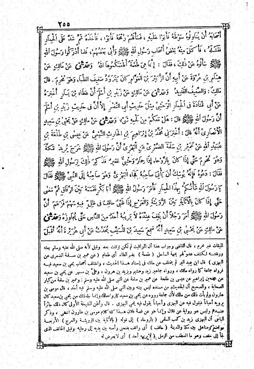 [778] حَتَّى إِذا كَانُوا بِبَعْض طَرِيق مَكَّة فِي مُسلم بالقاحة وَهُوَ وَاد على نَحْو ميل من السقيا وَهُوَ غير محرم قَالَ النَّوَوِيّ فَإِن قيل كَيفَ كَانَ أَبُو قَتَادَة غير محرم وَقد جَاوز مِيقَات الْمَدِينَة وَقد تقرر أَن من أَرَادَ حجا أَو عمْرَة لَا يجوز لَهُ مُجَاوزَة الْمِيقَات غير محرم قَالَ القَاضِي وَجَوَاب هَذَا أَن الْمَوَاقِيت لم تكن وقتت بعد وَقيل لِأَنَّهُ صلى الله عَلَيْهِ وَسلم بَعثه ورفقته لكشف عَدو لَهُم جِهَة السَّاحِل طعمة بِضَم الطَّاء أَي طَعَام