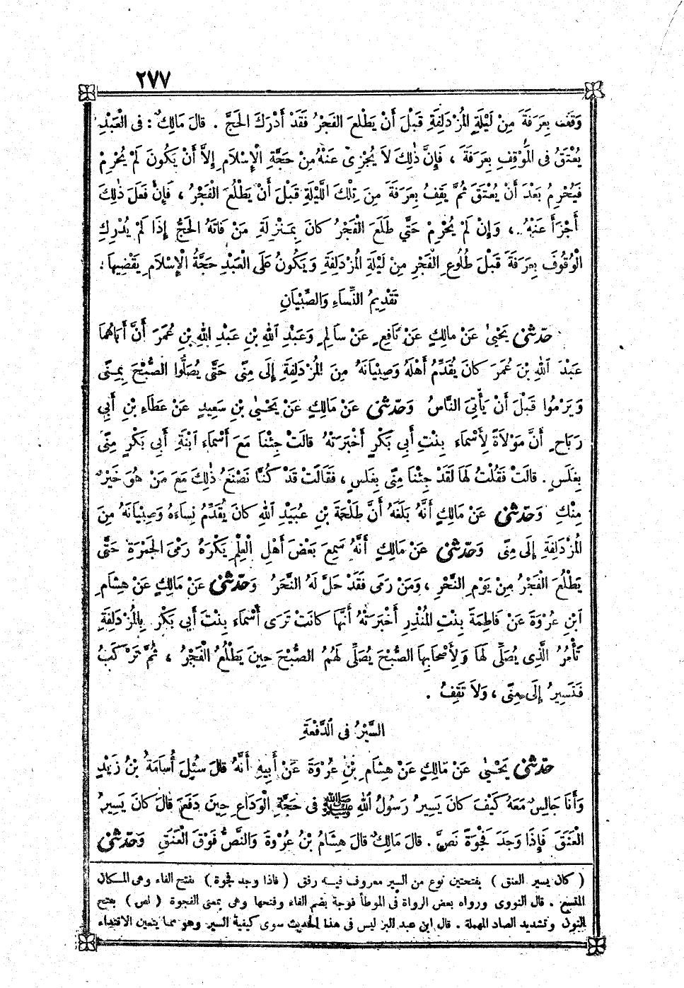 [869] مَالك أَنه بلغه أَن رَسُول الله صلى الله عَلَيْهِ وَسلم قَالَ عَرَفَة كلهَا موقف وارتفعوا عَن بطن عُرَنَة والمزدلفة كلهَا موقف وارتفعوا عَن بطن محسر أخرجه بِهَذَا اللَّفْظ بن وهب فِي موطئِهِ قَالَ أَخْبرنِي مُحَمَّد بن أبي حميد عَن مُحَمَّد بن أبي الْمُنْكَدر مَرْفُوعا بِهِ مُرْسلا وَورد مَوْصُولا من حَدِيث جَابر وَابْن عَبَّاس وَعلي بِدُونِ الِاسْتِثْنَاء الْمَذْكُور وبطن عُرَنَة غربي مَسْجِد عَرَفَة وبطن محسر دون الْمزْدَلِفَة