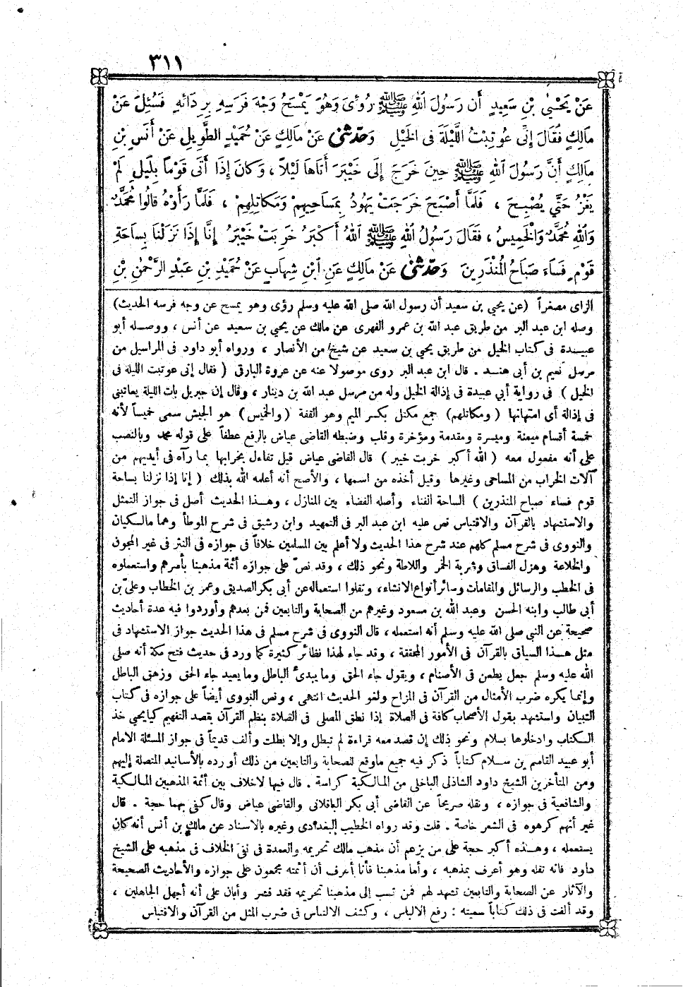 [1002] عَن يحيى بن سعيد أَن رَسُول الله صلى الله عَلَيْهِ وَسلم رُؤِيَ وَهُوَ يمسح عَن وَجه فرسه الحَدِيث وَصله بن عبد الْبر عَن طَرِيق عبد الله بن عَمْرو الفِهري عَن مَالك عَن يحيى بن سعيد عَن أنس وَوَصله أَبُو عُبَيْدَة فِي كتاب الْخَيل من طَرِيق يحيى بن سعيد عَن شيخ من الْأَنْصَار وَرَوَاهُ أَبُو دَاوُد فِي الْمَرَاسِيل من مُرْسل نعيم بن أبي هِنْد قَالَ بن عبد الْبر رُوِيَ مَوْصُولا عَنهُ عَن عُرْوَة الْبَارِقي فَقَالَ إِنِّي عوتبت اللَّيْلَة فِي الْخَيل فِي رِوَايَة أبي عُبَيْدَة فِي إذالة الْخَيل وَله من مُرْسل عبد الله بن دِينَار وَقَالَ إِن جِبْرِيل بَات اللَّيْلَة يعاتبني فِي إذالة أَي امتهانها