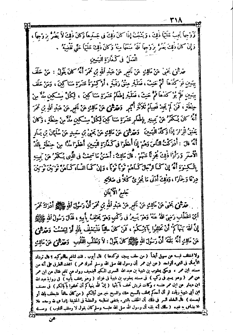 [1020] عَن بن عمر أَن رَسُول الله صلى الله عَلَيْهِ وَسلم أدْرك عمر اتّفقت الطّرق على أَنه من مُسْند بن عمر وَحكى يَعْقُوب بن شيبَة بن عبد الله الْعمريّ المكبر الضَّعِيف رَوَاهُ عَن نَافِع فَقَالَ عَن بن عمر عَن عمر وَهُوَ يسير فِي ركب فِي مُسْند يَعْقُوب بن شيبَة فِي غزَاة وَهُوَ يحلف بِأَبِيهِ فِي رِوَايَة عبد الله بن دِينَار عَن بن عمر عَنهُ وَكَانَت قُرَيْش تحلف بِآبَائِهَا إِن الله يَنْهَاكُم أَن تحلفُوا بِآبَائِكُمْ فِي مُصَنف بن أبي شيبَة زِيَادَة لَو أَن أحدكُم يحلف بالمسيح هلك والمسيح خير من آبائكم من كَانَ حَالفا فليحلف بِاللَّه أَو ليصمت قَالَ الْعلمَاء السِّرّ فِي ذَلِك أَن الْحلف بالشَّيْء يَقْتَضِي تَعْظِيمه وَالْعَظَمَة فِي الْحَقِيقَة إِنَّمَا هِيَ لله وَحده فَلَا يضاهى بِهِ غَيره