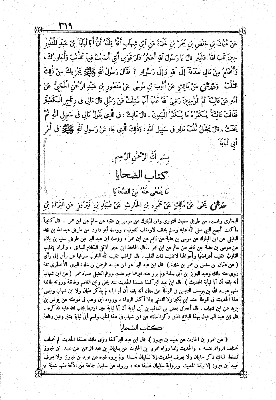 [1022] عَن عُثْمَان بن حَفْص بن عمر بن خلدَة قَالَ بن عبد الْبر هُوَ بن عبد الرَّحْمَن بن خلدَة البرقي الْأنْصَارِيّ ثِقَة روى عَنهُ مَالك وَعبد الْعَزِيز بن أبي سَلمَة وَلم يرو عَنهُ غَيرهمَا فِيمَا علمت وَوهم الْعقيلِيّ فَسَماهُ عمر عَن بن شهَاب أَنه بلغه أَن أَبَا لبَابَة الحَدِيث قَالَ بن عبد الْبر كَذَا هَذَا الحَدِيث عِنْد يحيى وَابْن الْقَاسِم وَطَائِفَة وروته طَائِفَة مِنْهُم عبد الله بن يُوسُف التنيسِي فِي الْمُوَطَّأ عَن مَالك أَنه بلغه أَن أَبَا لبَابَة لم يذكر عُثْمَان وَلَا بن شهَاب وَلَيْسَ هَذَا الحَدِيث فِي الْمُوَطَّأ عِنْد بن بكير وَلَا القعْنبِي وَلَا أَكثر الروَاة وَرَوَاهُ بن وهب فِي موطئِهِ عَن يُونُس بن يزِيد عَن بن شهَاب قَالَ أَخْبرنِي بعض بني السَّائِب بن أبي لبَابَة أَن أَبَا لبَابَة حِين ارْتبط فَتَابَ الله عَلَيْهِ فَذكره قَالَ بن عبد الْبر فَبَان بِهَذَا الْبَلَاغ الَّذِي ذكره مَالك عَن بن شهَاب فِي هَذَا الْخَبَر وَاسم أبي لبَابَة بشير وَقيل رِفَاعَة كتاب الضَّحَايَا