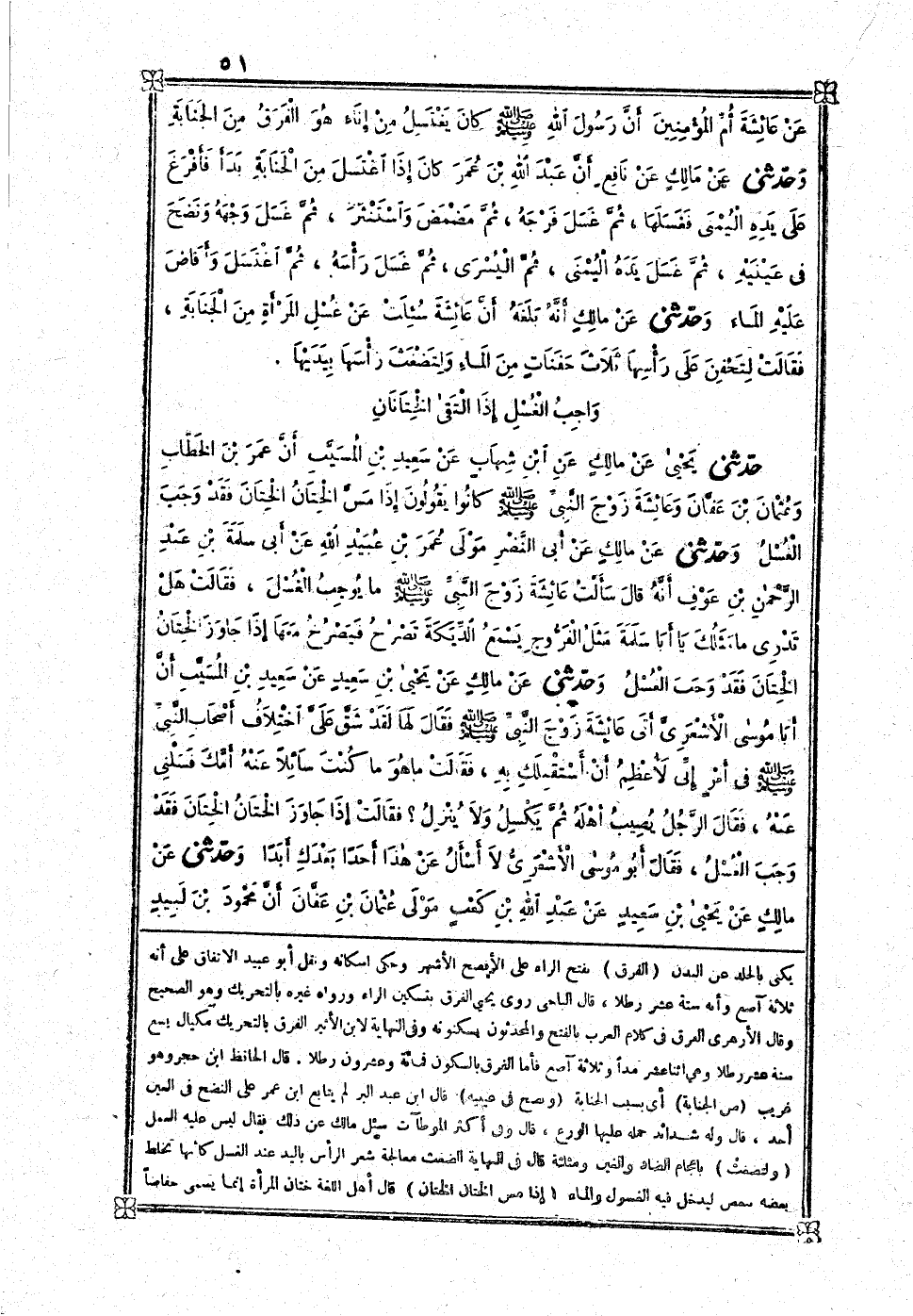 [100] ونضح فِي عَيْنَيْهِ قَالَ بن عبد الْبر لم يُتَابع بن عمر على النَّضْح فِي الْعين أحد قَالَ وَله شَدَائِد حمله عَلَيْهَا الْوَرع قَالَ وَفِي أَكثر الموطآت سُئِلَ مَالك عَن ذَلِك فَقَالَ لَيْسَ عَلَيْهِ الْعَمَل