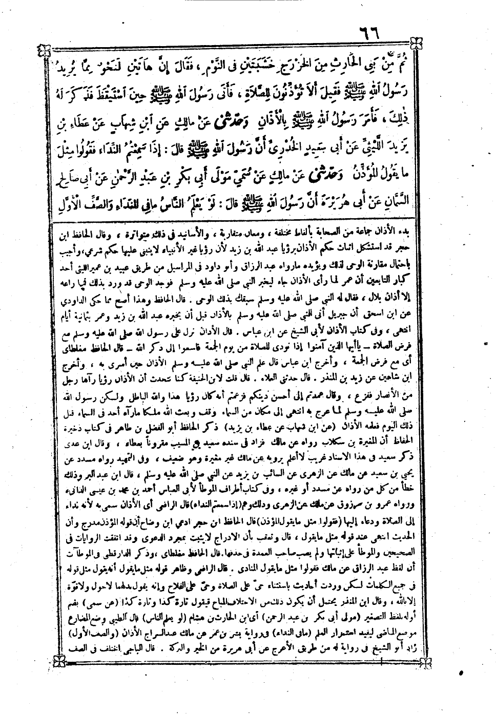 [147] كتاب الصَّلَاة عَن يحيى بن سعيد أَنه قَالَ كَانَ رَسُول الله صلى الله عَلَيْهِ وَسلم قد أَرَادَ أَن يتَّخذ خشبتين الحَدِيث قَالَ بن عبد الْبر روى قصَّة عبد الله بن زيد هَذِه فِي بَدْء الْأَذَان جمَاعَة من الصَّحَابَة بِأَلْفَاظ مُخْتَلفَة وَمَعَان مُتَقَارِبَة والأسانيد فِي ذَلِك متواترة وَقَالَ الْحَافِظ بن حجر قد اسْتشْكل اثبات حكم الْأَذَان برؤيا عبد الله بن زيد لِأَن رُؤْيا غير الْأَنْبِيَاء لَا يَنْبَنِي عَلَيْهَا حكم شَرْعِي وَأجِيب بِاحْتِمَال مُقَارنَة الْوَحْي لذَلِك وَيُؤَيِّدهُ مَا رَوَاهُ عبد الرَّزَّاق وَأَبُو دَاوُد فِي الْمَرَاسِيل من طَرِيق عبيد بن عُمَيْر اللَّيْثِيّ أحد كبار التَّابِعين أَن عمر لما رأى الْأَذَان جَاءَ ليخبر النَّبِي صلى الله عَلَيْهِ وَسلم فَوجدَ الْوَحْي قد ورد بذلك فَمَا راعه إِلَّا أَذَان بِلَال فَقَالَ لَهُ النَّبِي صلى الله عَلَيْهِ وَسلم سَبَقَك بذلك الْوَحْي قَالَ الْحَافِظ وَهَذَا أصح مِمَّا حكى الدَّاودِيّ عَن بن إِسْحَاق أَن جِبْرِيل أَتَى النَّبِي صلى الله عَلَيْهِ وَسلم بِالْأَذَانِ قبل أَن يُخبرهُ عبد الله بن زيد وَعمر بِثمَانِيَة أَيَّام انْتهى وَفِي كتاب الْأَذَان لأبي الشَّيْخ عَن بن عَبَّاس قَالَ الْأَذَان نزل على رَسُول الله صلى الله عَلَيْهِ وَسلم مَعَ فرض الصَّلَاة يَا أَيُّهَا الَّذِينَ آمَنُوا إِذا نُودي للصَّلَاة من يَوْم الْجُمُعَة فَاسَعَوْا إِلَى ذِكْرِ اللَّهِ قَالَ الْحَافِظ مغلطاي أَي مَعَ فرض الْجُمُعَة وَأخرج بن عَبَّاس قَالَ علم النَّبِي صلى الله عَلَيْهِ وَسلم الْأَذَان حِين أسرِي بِهِ وَأخرج بن شاهين عَن زيد بن الْمُنْذر قَالَ حَدثنِي الْعَلَاء قَالَ قلت لِابْنِ الحنيفة كُنَّا نتحدث أَن الْأَذَان رُؤْيا رَآهَا رجل من الْأَنْصَار فَفَزعَ وَقَالَ عمدتم إِلَى أحسن دينكُمْ فزعمتم أَنه كَانَ رُؤْيا هَذَا وَالله الْبَاطِل وَلَكِن رَسُول الله صلى الله عَلَيْهِ وَسلم لما عرج بِهِ انْتهى إِلَى مَكَان من السَّمَاء وقف وَبعث الله ملكا مَا رَآهُ أحد فِي السَّمَاء قبل ذَلِك الْيَوْم فَعلمه الْأَذَان