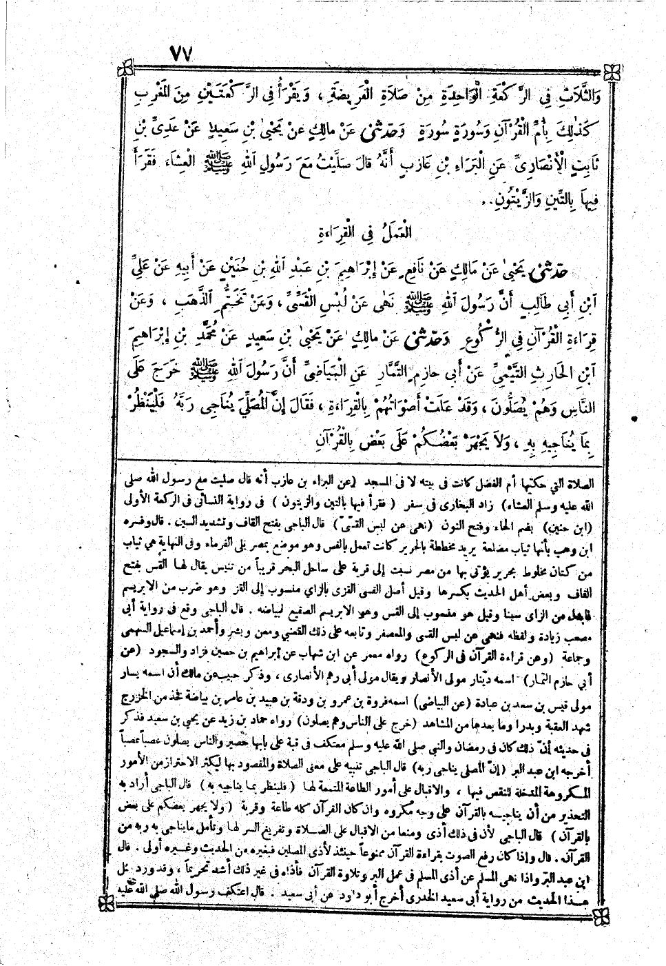 [175] عَن الْبَراء بن عَازِب أَنه قَالَ صليت مَعَ رَسُول الله صلى الله عَلَيْهِ وَسلم الْعشَاء زَاد البُخَارِيّ فِي سفر فَقَرَأَ فِيهَا بِالتِّينِ وَالزَّيْتُون فِي رِوَايَة النَّسَائِيّ فِي الرَّكْعَة الأولى