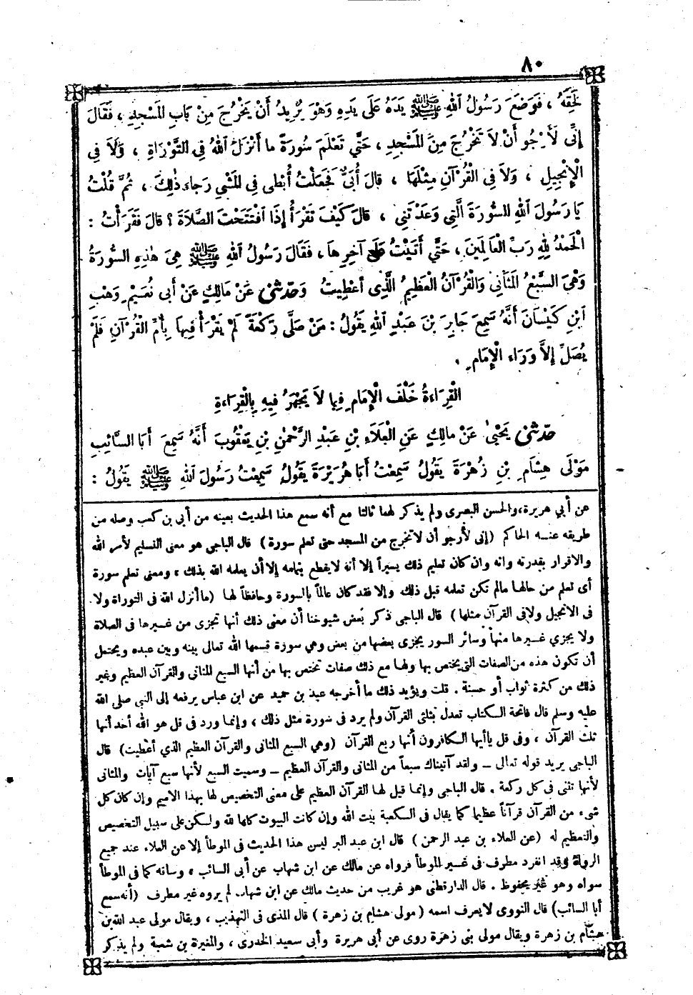 [186] أَن أَبَا سعيد مولى عَامر بن كرير قَالَ بن عبد الْبر هُوَ تَابِعِيّ مَعْدُود فِي أهل الْمَدِينَة لَا يُوقف لَهُ على اسْم وَذكر المذى فِي تهذيبه أَنه رُوِيَ عَن أبي هُرَيْرَة وَالْحسن الْبَصْرِيّ وَلم يذكر لَهما ثَالِثا مَعَ أَنه سمع هَذَا الحَدِيث بِعَيْنِه من أبي بن كَعْب وَصله من طَرِيقه عَنهُ الْحَاكِم إِنِّي لأرجو أَن لَا تخرج من الْمَسْجِد حَتَّى تعلم سُورَة قَالَ الْبَاجِيّ هُوَ معنى التَّسْلِيم لأمر الله والاقرار بقدرته وانه وَإِن كَانَ تَعْلِيم ذَلِك يَسِيرا إِلَّا انه لَا يقطع بِتَمَامِهِ إِلَّا أَن يُعلمهُ الله بذلك وَمعنى تعلم سُورَة أَي تعلم من حَالهَا مَا لم تكن تعلمه قبل ذَلِك وَإِلَّا فقد كَانَ عَالما بالسورة وحافظا لَهَا مَا أنزل الله فِي التَّوْرَاة وَلَا فِي الْإِنْجِيل وَلَا فِي الْقُرْآن مثلهَا قَالَ الْبَاجِيّ ذكر بعض شُيُوخنَا أَن معنى ذَلِك انها تجزي من غَيرهَا فِي الصَّلَاة وَلَا يَجْزِي غَيرهَا مِنْهَا وَسَائِر السُّور يَجْزِي بَعْضهَا من بعض وَهِي سُورَة قسمهَا الله تَعَالَى بَينه وَبَين عَبده يحْتَمل أَن تكون هَذِه من الصِّفَات الَّتِي يخْتَص بهَا وَلها مَعَ ذَلِك صِفَات تخْتَص بهَا من أَنَّهَا السَّبع المثاني وَالْقُرْآن الْعَظِيم وَغير ذَلِك من كَثْرَة ثَوَاب أَو حَسَنَة قلت وَيُؤَيّد ذَلِك مَا أخرجه عبد بن حميد عَن بن عَبَّاس يرفعهُ إِلَى النَّبِي صلى الله عَلَيْهِ وَسلم قَالَ فَاتِحَة الْكتاب تعدل بِثُلثي الْقُرْآن وَلم يرد فِي سُورَة مثل ذَلِك وَإِنَّمَا ورد فِي قُلْ هُوَ الله أحد أَنه ثلث الْقُرْآن وَفِي قُلْ يَا أَيُّهَا الْكَافِرُونَ أَنَّهَا ربع الْقُرْآن وَهِي السَّبع المثاني وَالْقُرْآن الْعَظِيم الَّذِي أَعْطَيْت قَالَ الْبَاجِيّ يُرِيد قَوْله تَعَالَى وَلَقَدْ آتَيْنَاكَ سَبْعاً مِنَ المثاني وَالْقُرْآن الْعَظِيم وَسميت السَّبع لِأَنَّهَا سبع آيَات والمثاني لآنها تثنى فِي كل رَكْعَة قَالَ الْبَاجِيّ وَإِنَّمَا قيل لَهَا الْقُرْآن الْعَظِيم على معنى التَّخْصِيص لَهَا بِهَذَا الِاسْم وَإِن كَانَ كل شَيْء من الْقُرْآن قُرْآنًا عَظِيما كَمَا يُقَال فِي الْكَعْبَة بَيت الله وَإِن كَانَت الْبيُوت كلهَا لله وَلَكِن على سَبِيل التَّخْصِيص والتعظيم لَهُ