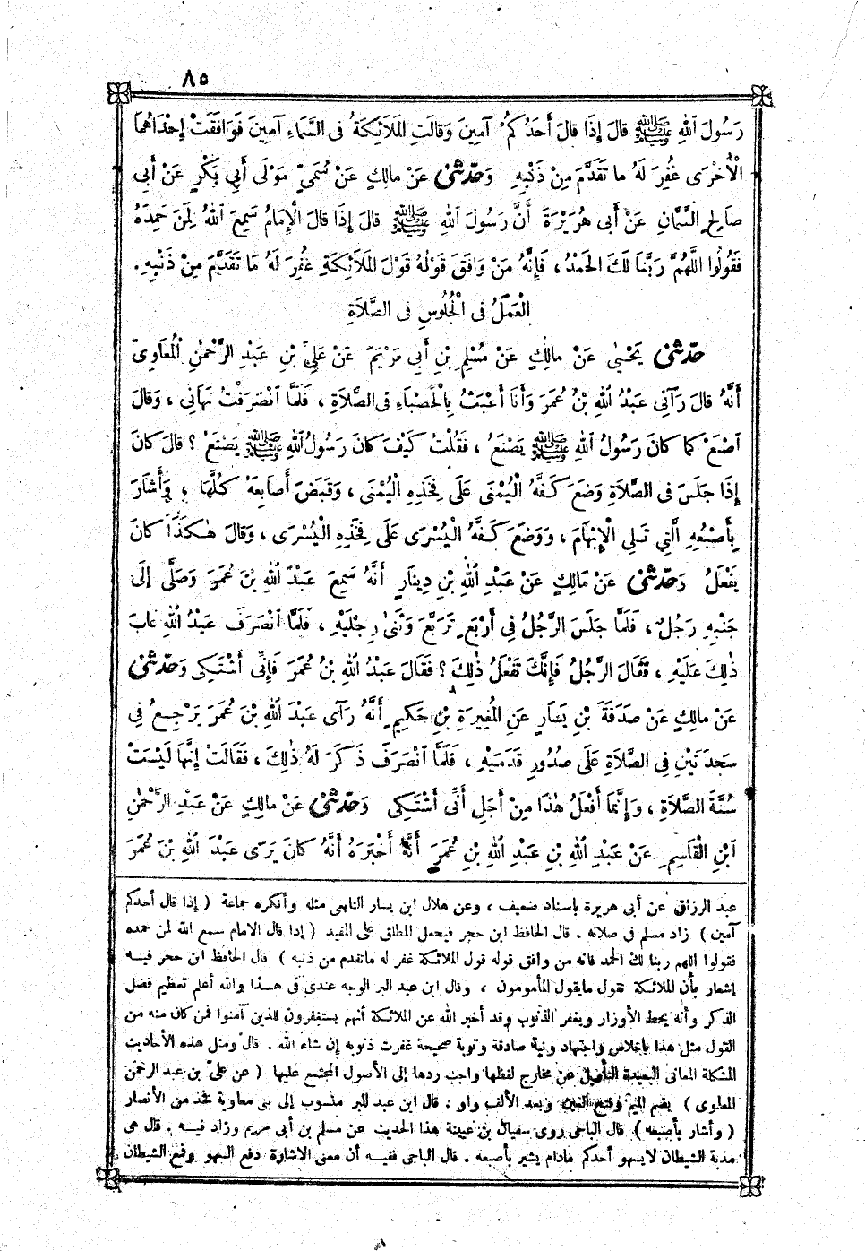 [197] إِذا قَالَ الإِمَام سمع الله لمن حَمده فَقولُوا اللَّهُمَّ رَبنَا لَك الْحَمد فَإِنَّهُ من وَافق قَوْله قَول الْمَلَائِكَة غفر لَهُ مَا تقدم من ذَنبه قَالَ الْحَافِظ بن حجر فِيهِ إِشْعَار بِأَن الْمَلَائِكَة تَقول مَا يَقُول المأمومون وَقَالَ بن عبد الْبر الْوَجْه عِنْدِي فِي هَذَا وَالله أعلم تَعْظِيم فضل الذّكر وَأَنه يحط الأوزار وَيغْفر الذُّنُوب وَقد أخبر الله عَن الْمَلَائِكَة أَنهم يَسْتَغْفِرُونَ للَّذين آمنُوا فَمن كَانَ مِنْهُ من القَوْل مثل هَذَا بإخلاص واجتهاد وَنِيَّة صَادِقَة وتوبة صَحِيحَة غفرت ذنُوبه إِن شَاءَ الله قَالَ ومث لهَذِهِ الْأَحَادِيث المشكلة الْمعَانِي الْبَعِيدَة التَّأْوِيل عَن مخارج لَفظهَا وَاجِب ردهَا إِلَى الْأُصُول الْمُجْتَمع ليها