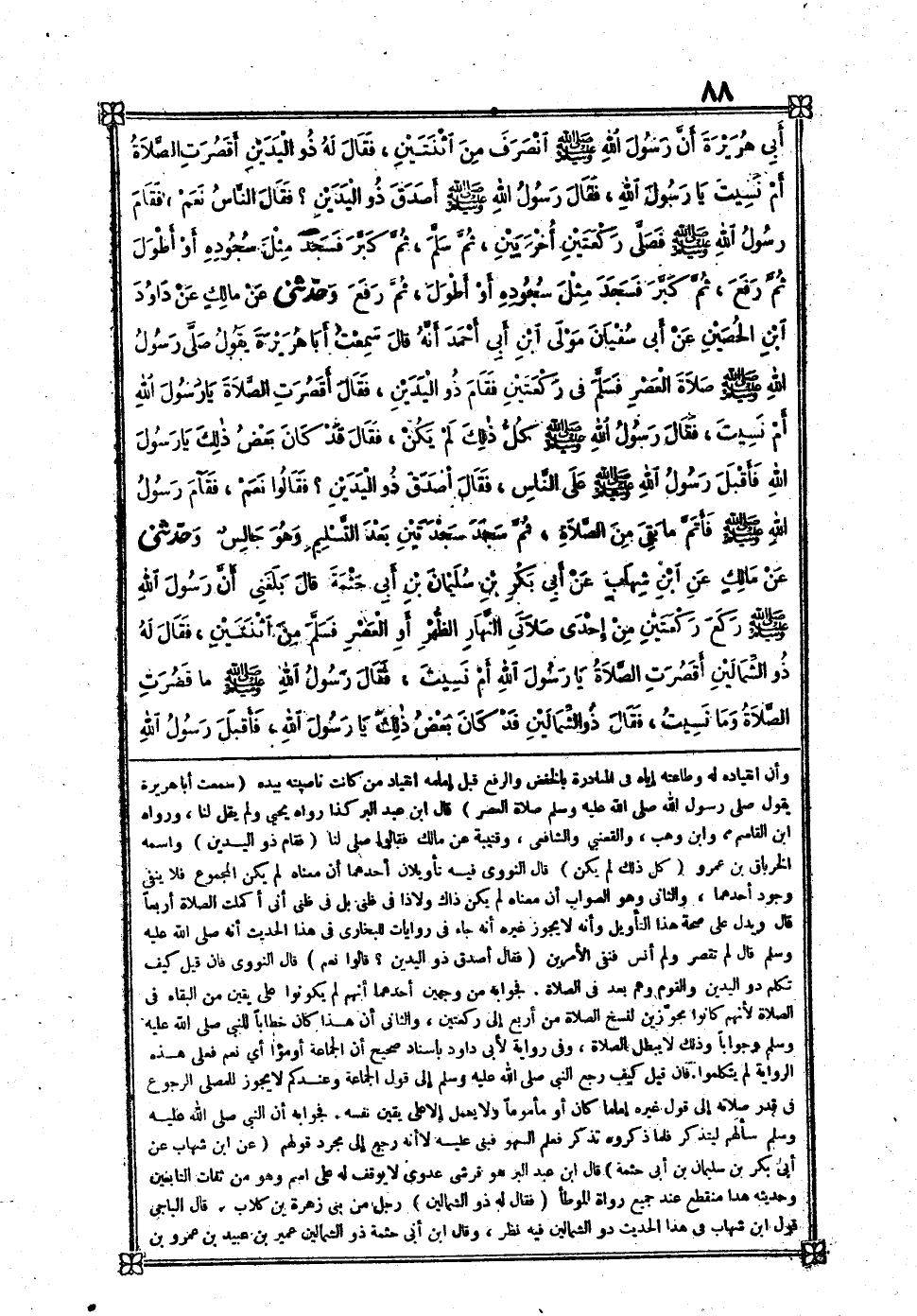 [211] سَمِعت أَبَا هُرَيْرَة يَقُول صلى رَسُول الله صلى الله عَلَيْهِ وَسلم صَلَاة الْعَصْر قَالَ بن عبد الْبر كَذَا رَوَاهُ يحيى وَلم يقل لنا وَرَوَاهُ بن الْقَاسِم وَابْن وهب والقعنبي وَالشَّافِعِيّ وقتيبة عَن مَالك فَقَالُوا صلى لنا فَقَامَ ذُو الْيَدَيْنِ واسْمه الْخِرْبَاق بن عَمْرو كل ذَلِك لم يكن قَالَ النَّوَوِيّ فِيهِ تَأْوِيلَانِ أَحدهمَا أَن مَعْنَاهُ لم يكن الْمَجْمُوع فَلَا يَنْفِي وجود أَحدهمَا وَالثَّانِي وَهُوَ الصَّوَاب أَن مَعْنَاهُ لم يكن ذَاك وَلَا ذَا فِي ظَنِّي بل فِي ظَنِّي أَنِّي أكملت الصَّلَاة أَرْبعا قَالَ وَيدل على صِحَة هَذَا التَّأْوِيل وَأَنه لَا يجوز غَيره أَنه جَاءَ فِي رِوَايَات للْبُخَارِيّ فِي هَذَا الحَدِيث انه صلى الله عَلَيْهِ وَسلم قَالَ لم تقصر وَلم أنس فنفى الْأَمريْنِ فَقَالَ أصدق ذُو الْيَدَيْنِ قَالُوا نعم قَالَ النَّوَوِيّ فَإِن قيل كَيفَ تكلم ذُو الْيَدَيْنِ وَالْقَوْم وهم بعد فِي الصَّلَاة فَجَوَابه من وَجْهَيْن أَحدهمَا أَنهم لم يَكُونُوا على يَقِين من الْبَقَاء فِي الصَّلَاة لأَنهم كَانُوا مجوزين لنسخ الصَّلَاة من أَربع إِلَى رَكْعَتَيْنِ وَالثَّانِي أَن هَذَا كَانَ خطابا للنَّبِي صلى الله عَلَيْهِ وَسلم وجوابا وَذَلِكَ لَا يبطل الصَّلَاة وَفِي رِوَايَة لأبي دَاوُد بِإِسْنَاد صَحِيح أَن الْجَمَاعَة أومئوا أَي نعم فعلى هَذِه الرِّوَايَة لم يتكلموا فَإِن قيل كَيفَ رَجَعَ النَّبِي صلى الله عَلَيْهِ وَسلم إِلَى قَول الْجَمَاعَة وعندكم لَا يجوز للْمُصَلِّي الرُّجُوع فِي قدر صلَاته إِلَى قَول غَيره إِمَامًا كَانَ أَو مَأْمُوما وَلَا يعْمل إِلَّا على يَقِين نَفسه فَجَوَابه أَن النَّبِي صلى الله عَلَيْهِ وَسلم سَأَلَهُمْ ليتذكر فَلَمَّا ذَكرُوهُ تذكر فَعلم السَّهْو فَبنى عَلَيْهِ لَا أَنه رَجَعَ إِلَى مُجَرّد قَوْلهم