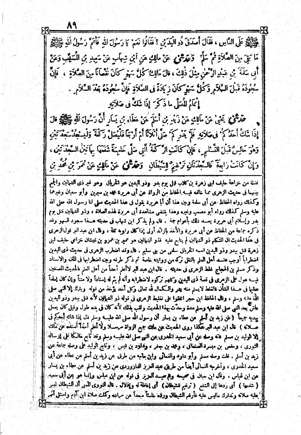 [212] عَن بن شهَاب عَن أبي بكر بن سُلَيْمَان بن أبي حثْمَة قَالَ بن عبد الْبر هُوَ قرشي عدوي لَا يُوقف لَهُ على اسْم وَهُوَ من ثِقَات التَّابِعين وَحَدِيثه هَذَا مُنْقَطع عِنْد جَمِيع رُوَاة الْمُوَطَّأ فَقَالَ لَهُ ذُو الشمالين رجل من بني زهرَة بن كلاب قَالَ الْبَاجِيّ قَول بن شهَاب فِي هَذَا الحَدِيث ذُو الشمالين فِيهِ نظر وَقَالَ بن أبي حثْمَة ذُو الشمالين عُمَيْر بن عبيد بن عَمْرو بن فضلَة من خُزَاعَة حَلِيف لبني زهرَة بن كلاب قتل يَوْم بدر وَذُو الْيَدَيْنِ هُوَ الْخِرْبَاق وَهُوَ غير ذِي الشمالين وَالْجمع بَينهمَا فِي حَدِيث الزُّهْرِيّ مِمَّا خَلفه فِيهِ الْحفاظ من الروَاة عَن أبي هُرَيْرَة مُحَمَّد بن سِيرِين وَأَبُو سُفْيَان غَيرهمَا وَكَذَلِكَ رَوَاهُ الْحفاظ عَن أبي سَلمَة وَبَين هَذَا أَن أَبَا هُرَيْرَة يَقُول فِي هَذَا الحَدِيث صلى لنا رَسُول الله صلى الله عَلَيْهِ وَسلم كَذَلِك رَوَاهُ أَبُو مُصعب وَغَيره وَهَذَا يَقْتَضِي مُشَاهدَة أبي هُرَيْرَة لهَذِهِ الصَّلَاة وَذُو الشمالين قتل يَوْم بدر وَإِسْلَام أبي هُرَيْرَة بعد ذَلِك بأعوام جمة قَالَ وَلم يذكر أَن شهَاب فِي حَدِيثه هَذَا سُجُود السَّهْو وَقد ذكره جمَاعَة من الْحفاظ عَن أبي هُرَيْرَة وَالْأَخْذ بِالزَّائِدِ أولى إِذا كَانَ رَاوِيه ثِقَة وَقَالَ بن عبد الْبر الزُّهْرِيّ فِي هَذَا الحَدِيث أَن الْمُتَكَلّم ذُو الشمالين لم يُتَابع عَلَيْهِ فذو الشمالين هُوَ عُمَيْر بن عَمْرو بن غيثان خزاعي حَلِيف لبني زهرَة قتل ببدر وَذُو الْيَدَيْنِ اسْمه الْخِرْبَاق سلمي من بني سليم قَالَ وَقد اضْطربَ الزُّهْرِيّ فِي حَدِيث ذِي الْيَدَيْنِ اضطرابا أوجب عِنْد أهل الْعلم بِالنَّقْلِ تَركه من رِوَايَته خَاصَّة ثمَّ ذكر طرقه وَبَين اضطرابها فِي الْمَتْن والإسناد وَذكر مُسلم بن الْحجَّاج غلط الزُّهْرِيّ فِي حَدِيثه قَالَ بن عبد الْبر لَا أعلم أحدا من أهل الْعلم بِالْحَدِيثِ المصنفين فِيهِ عول على الزُّهْرِيّ فِي قصَّة ذِي الْيَدَيْنِ وَكلهمْ تَرَكُوهُ لاضطرابه وَأَنه لم يتم لَهُ إِسْنَادًا وَلَا متْنا وَإِن كَانَ إِمَامًا عَظِيما فِي هَذَا الشَّأْن فالغلط لَا يسلم مِنْهُ بشر والكمال لله تَعَالَى وكل أحد يُؤْخَذ من قَوْله وَيتْرك إِلَّا النَّبِي صلى الله عَلَيْهِ وَسلم وَقَالَ الْحَافِظ بن حجر اتَّفقُوا على تغليط الزُّهْرِيّ فِي قَوْله ذُو الشمالين لِأَنَّهُ قتل ببدر وَذُو الْيَدَيْنِ عَاشَ بعد النَّبِي صلى الله عَلَيْهِ وَسلم مُدَّة وَحدث بِهَذَا الحَدِيث ولقب بذلك لِأَنَّهُ كَانَ فِي يَده طول وَقيل كَانَ يعْمل بيدَيْهِ جَمِيعًا