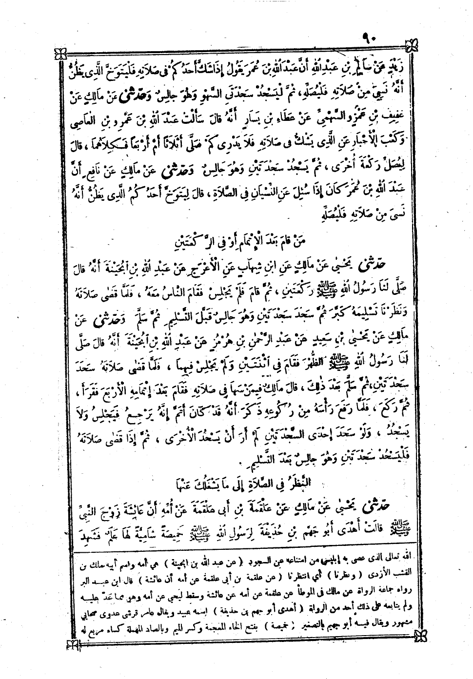 [214] عَن زيد بن اسْلَمْ عَن عَطاء بن يسَار أَن رَسُول الله صلى الله عَلَيْهِ وَسلم قَالَ إِذا شكّ أحدكُم فِي صلَاته قَالَ بن عبد الْبر هَكَذَا روى الحَدِيث عَن مَالك جَمِيع الروَاة مُرْسلا وَلَا أعلم أحدا أسْندهُ عَن مَالك إِلَّا الْوَلِيد بن مُسلم فَإِنَّهُ وَصله عَن أبي سعيد الْخُدْرِيّ عَن النَّبِي صلى الله عَلَيْهِ وَسلم وَقد تَابع مَالِكًا على إرْسَاله الثَّوْريّ وَحَفْص بن ميسرَة الصَّنْعَانِيّ وَمُحَمّد بن جَعْفَر وَدَاوُد بن قيس وتابع الْوَلِيد على وَصله جمَاعَة عَن زيد بن أسلم قلت وَصله مُسلم وَأَبُو دَاوُد وَالنَّسَائِيّ وَابْن ماجة من طرق عَن زيد بن اسْلَمْ عَن عَطاء عَن أبي سعيد الْخُدْرِيّ وَأخرجه النَّسَائِيّ أَيْضا من طَرِيق عبد الْعَزِيز الداروردي عَن زيد بن اسْلَمْ عَن عَطاء بن يسَار عَن بن عَبَّاس وَقَالَ بن حبَان فِي صَحِيحه وهم عبد الْعَزِيز فِي قَوْله عَن بن عَبَّاس وَإِنَّمَا هُوَ عَن أبي سعيد شفعها أَي ردهَا إِلَى الشفع ترغيم للشَّيْطَان أَي إِي إغاظة لَهُ وإذلال قَالَ النَّوَوِيّ الْمَعْنى ان الشَّيْطَان لبس عَلَيْهِ صلَاته وتدارك مَا لبس عَلَيْهِ فأرغم الشَّيْطَان ورده خاسئا مُبْعدًا عَن مُرَاده وكملت صَلَاة بن آدم وامتثل أَمر الله تَعَالَى الَّذِي عصى بِهِ إِبْلِيس من امْتِنَاعه عَن السُّجُود
