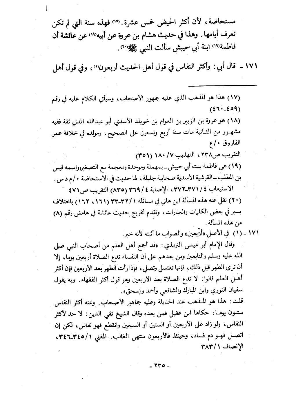 قَالَ أبي وَأكْثر النّفاس فِي قَول أهل الحَدِيث أَرْبَعُونَ وَفِي قَول أهل