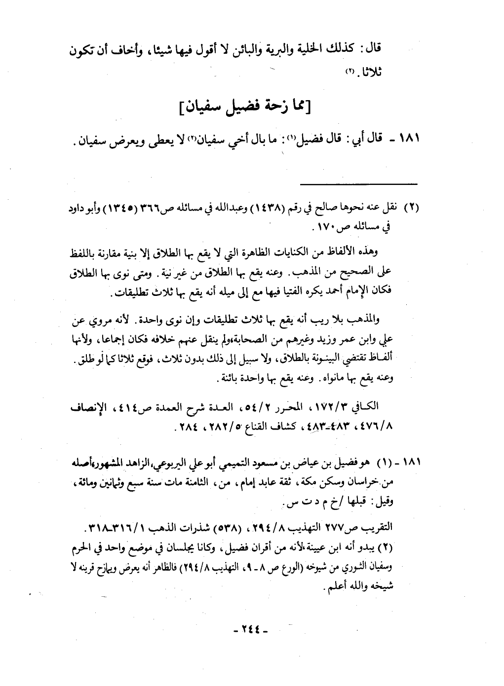١٨١ - قَالَ أبي قَالَ فُضَيْل مَا بَال أخي سُفْيَان لَا يعْطى ويعرض سُفْيَان