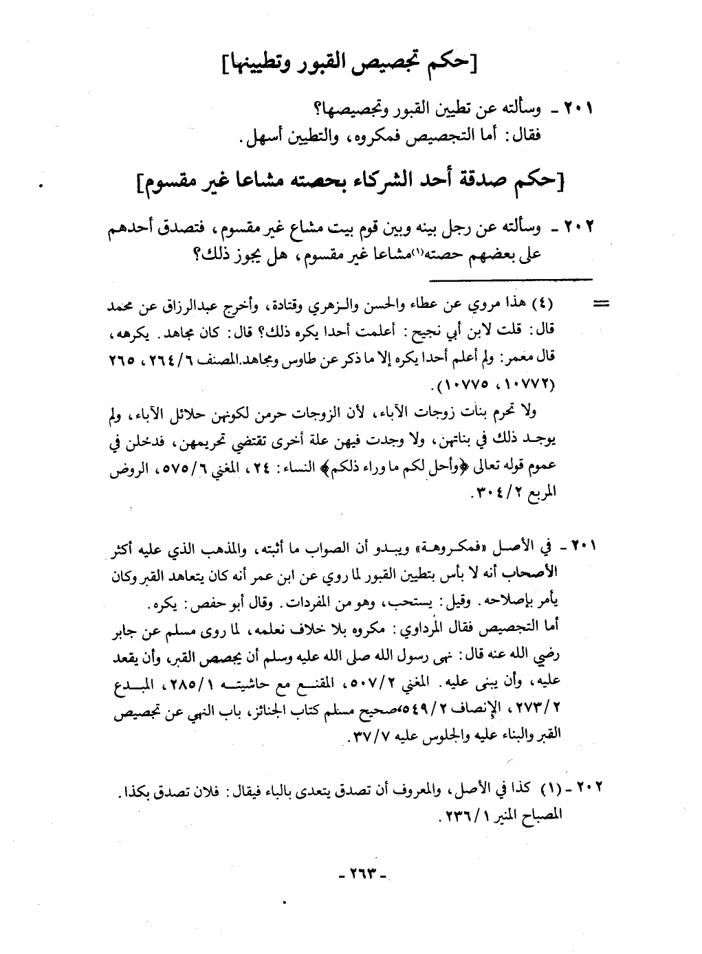 ٢٠١ - وَسَأَلته عَن تطيين الْقُبُور وتجصيصها فَقَالَ أما التجصيص فمكروه والتطيين أسهل