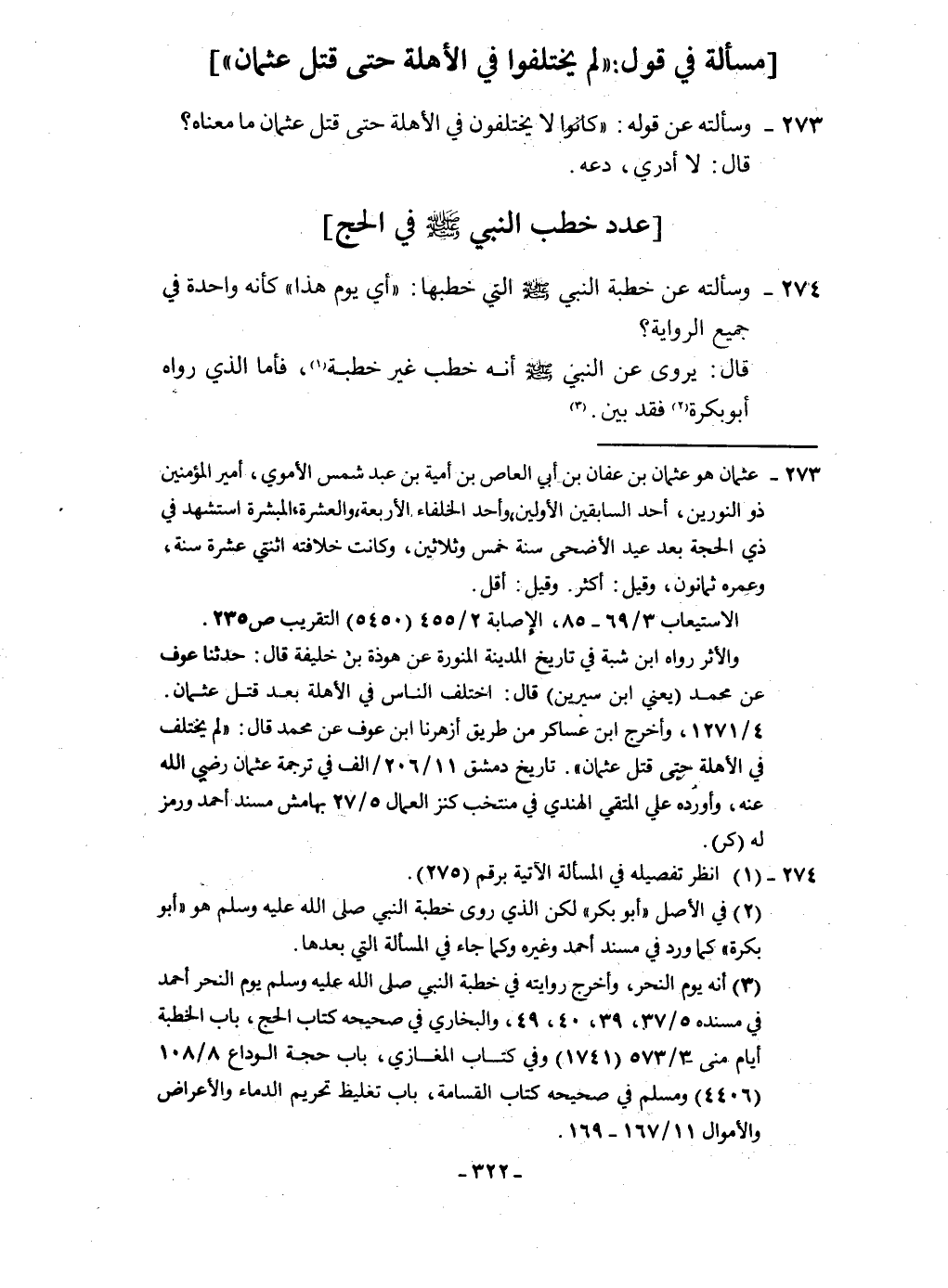 ٢٧٣ - وَسَأَلته عَن قَوْله كَانُوا لَا يَخْتَلِفُونَ فِي الْأَهِلّة حَتَّى قتل عُثْمَان مَا مَعْنَاهُ قَالَ لَا أَدْرِي دَعه