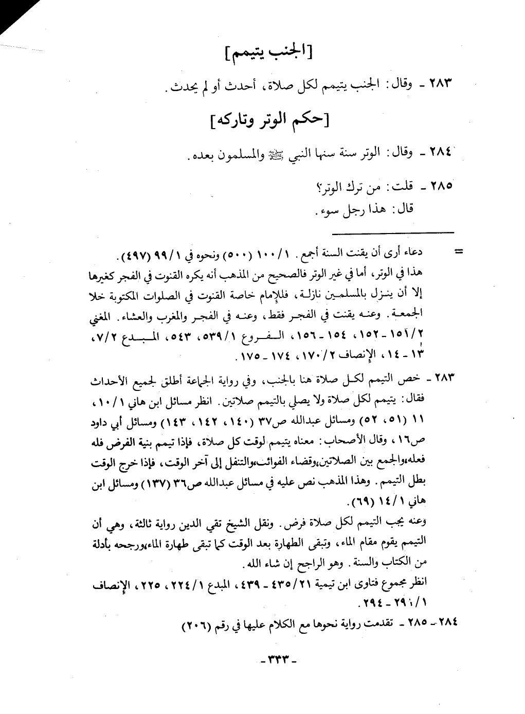 ٢٨٤ - وَقَالَ الْوتر سنة سنّهَا النَّبِي صلى الله عَلَيْهِ وَسلم والمسلمون بعده