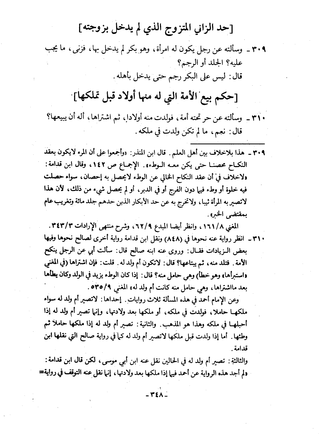 ٣٠٩ - وَسَأَلته عَن رجل يكون لَهُ امْرَأَة وَهُوَ بكر لم يدْخل بهَا فزنى مَا يجب عَلَيْهِ الْجلد أَو الرَّجْم قَالَ لَيْسَ على الْبكر رجم حَتَّى يدْخل بأَهْله