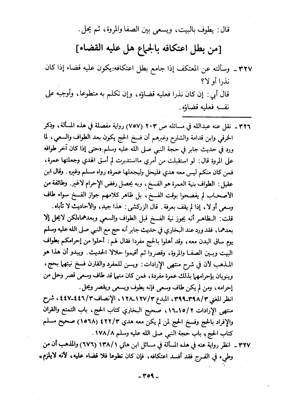 ٣٢٧ - وَسَأَلته عَن الْمُعْتَكف إِذا جَامع بَطل اعْتِكَافه يكون عَلَيْهِ قَضَاء إِذا كَانَ نذرا أَو لَا قَالَ أبي إِن كَانَ نذرا فَعَلَيهِ قَضَاؤُهُ وَإِن تكلم بِهِ مُتَطَوعا وأوجبه على نَفسه فَعَلَيهِ قَضَاؤُهُ
