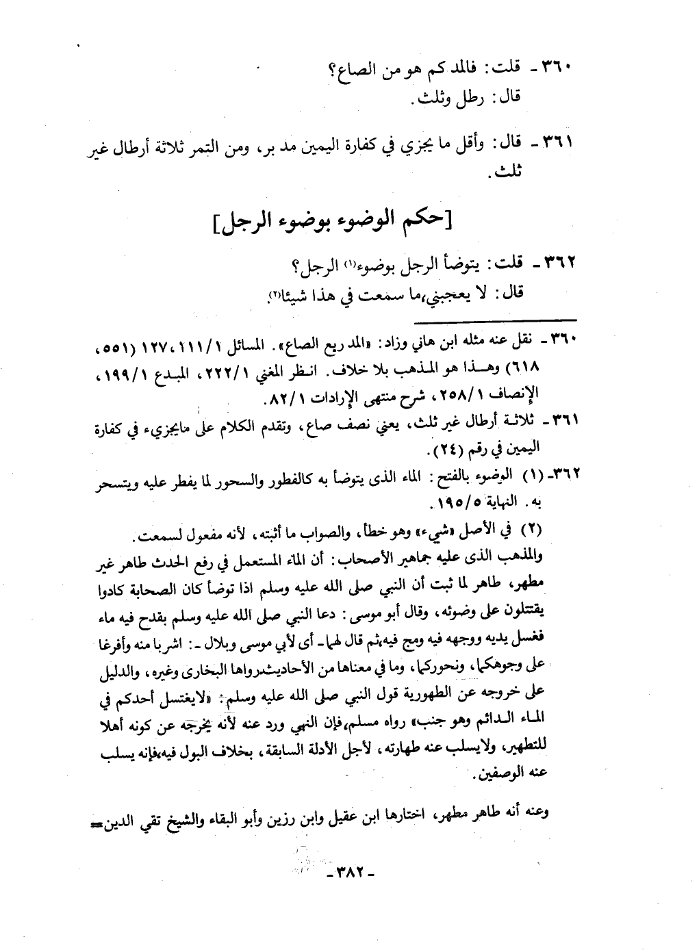 ٣٦٠ - قلت فالمد كم هُوَ من الصَّاع قَالَ رَطْل وَثلث