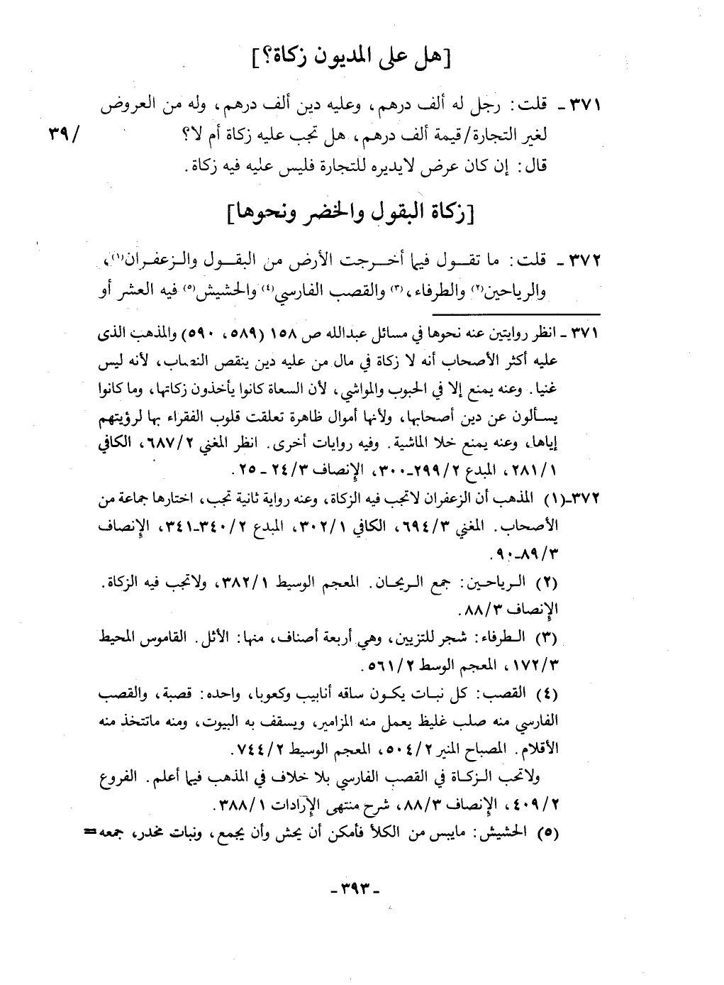 ٣٧١ - قلت رجل لَهُ ألف دِرْهَم وَعَلِيهِ دين ألف دِرْهَم وَله من الْعرُوض لغير التِّجَارَة قيمَة ألف دِرْهَم هَل تجب عَلَيْهِ زَكَاة أم لَا قَالَ إِن كَانَ عرض لَا يديره للتِّجَارَة فَلَيْسَ عَلَيْهِ فِيهِ زَكَاة