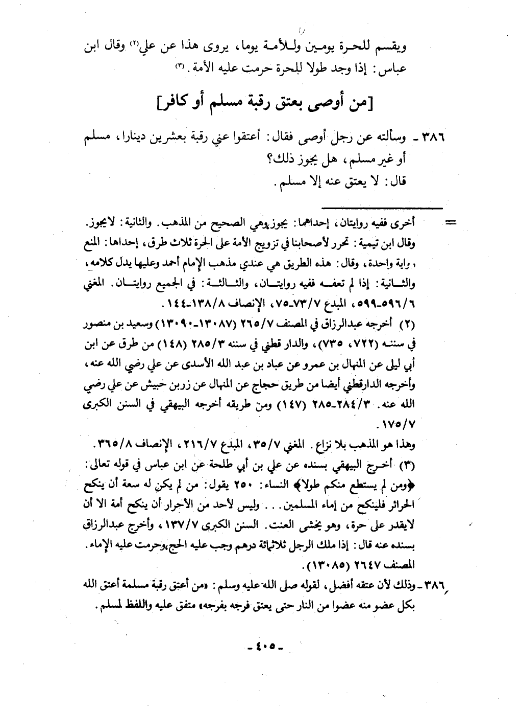 ٣٨٦ - وَسَأَلته عَن رجل أوصى فَقَالَ أعتقوا عني رَقَبَة بِعشْرين دِينَارا مُسلم أَو غير مُسلم هَل يجوز ذَلِك قَالَ لَا يعْتق عَنهُ إِلَّا مُسلم