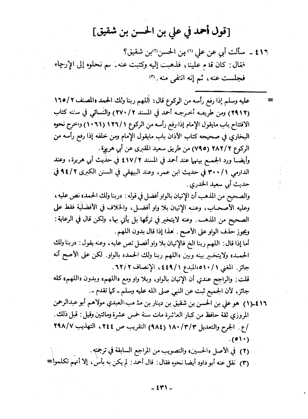 كتاب مسائل الإمام أحمد رواية ابنه أبي الفضل صالح (اسم الجزء: 1)