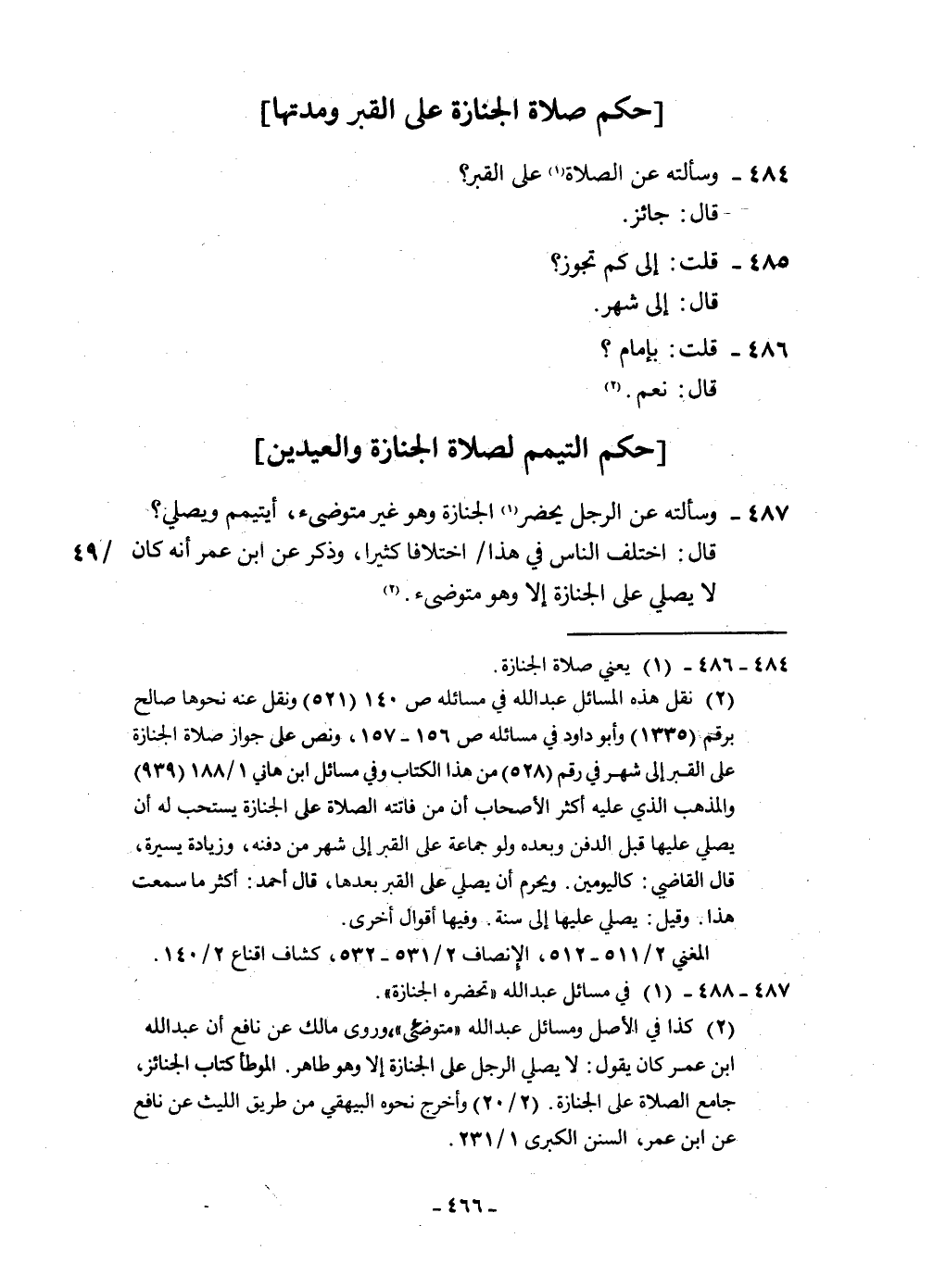 ٤٨٤ - وَسَأَلته عَن الصَّلَاة على الْقَبْر قَالَ جَائِز