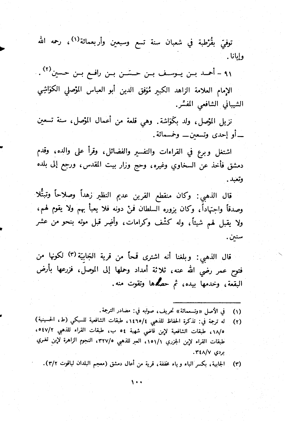 (¬2) له ترجمة في: تذكرة الحفاظ للذهبي 4/ 1465، طبقات الشافعية للسبكي (ط، الحسينية) 5/ 18، طبقات الشافعية لابن قاضي شهبة 54 ب، طبقات القراء للذهبي 2/ 547، طبقات القراء لابن الجزري 1/ 151، العبر للذهبي 5/ 327، النجوم الزاهرة لابن تغري بردي 7/ 348.