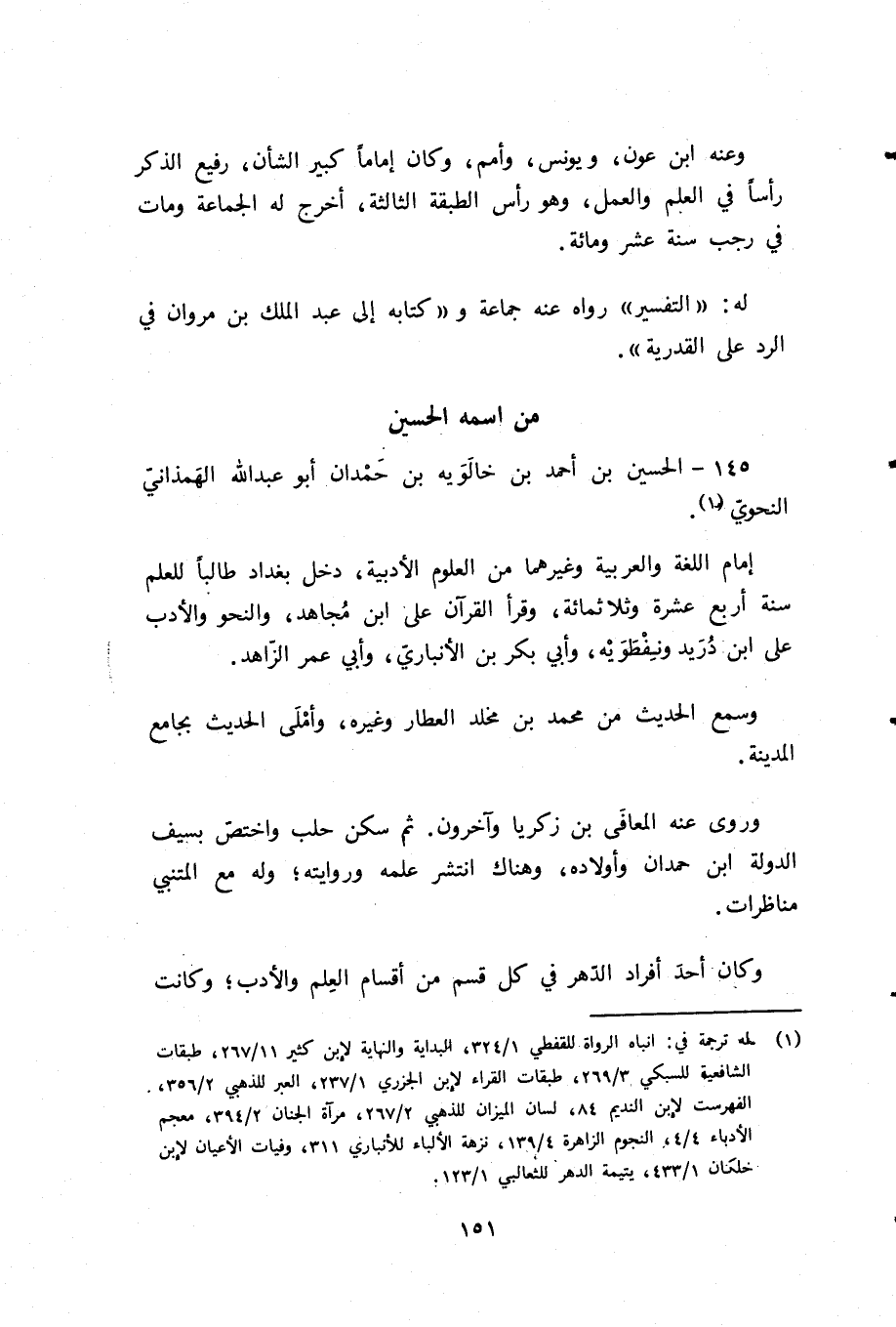 145 - الحسين بن أحمد بن خالويه بن حمدان أبو عبد الله الهمذانيّ النحويّ (¬1).