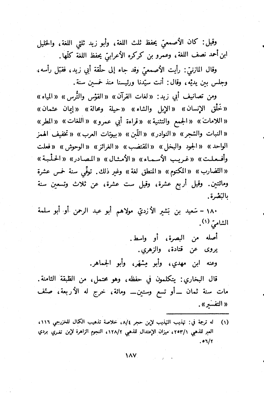 180 - سعيد بن بشير الأزديّ مولاهم أبو عبد الرحمن أو أبو سلمة الشاميّ (¬1).